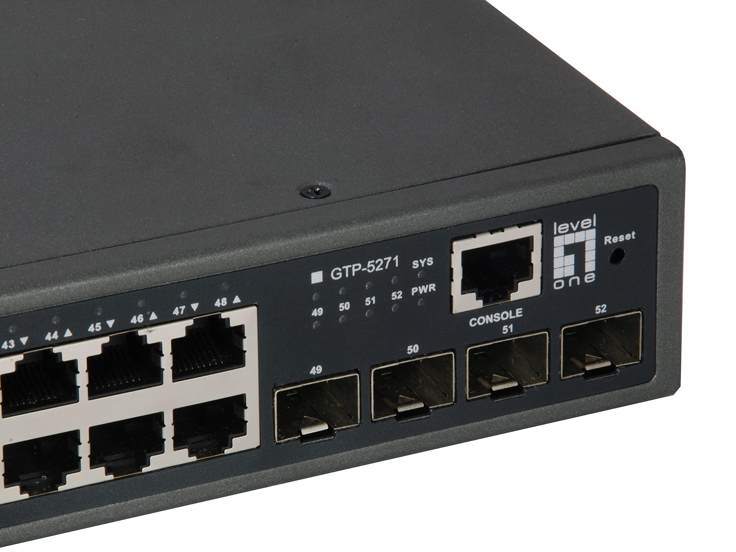 LevelOne Switch GTP-5271 - Switch Gigabit PoE a 52 porte, 4 x 10 GbE SFP+, 48 uscite PoE, 400 W/L3 Gigabit Ethernet (10/100/1000) / Power over Ethernet (PoE)/grigio