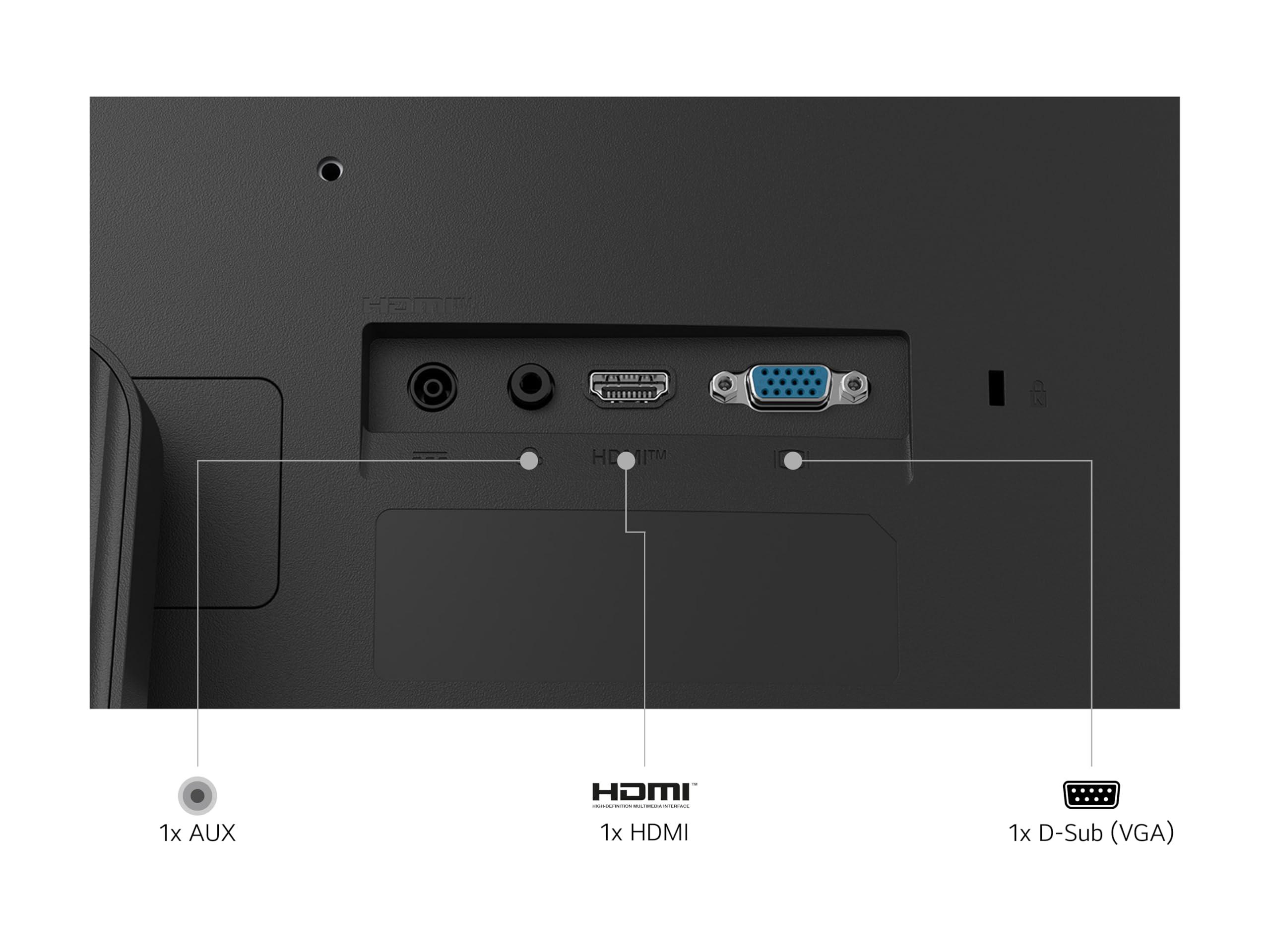 - CONNESSIONI: 1x HDMI, 1x D-Sub (VGA) e Uscita cuffie (AUX 3.5mm) a tua disposizione