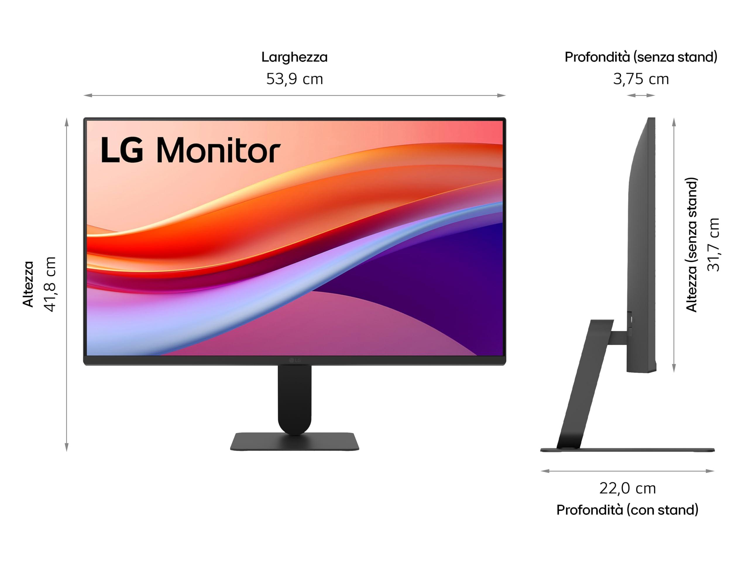 LG 24U411A Monitor 24" Full HD IPS, HDR 10, 120Hz, 1ms MBR, HDMI, D-Sub (VGA), Uscita cuffie, 1920x1080, sRGB 99%, Schermo Antiriflesso, Flicker Safe, Reader Mode, Nero