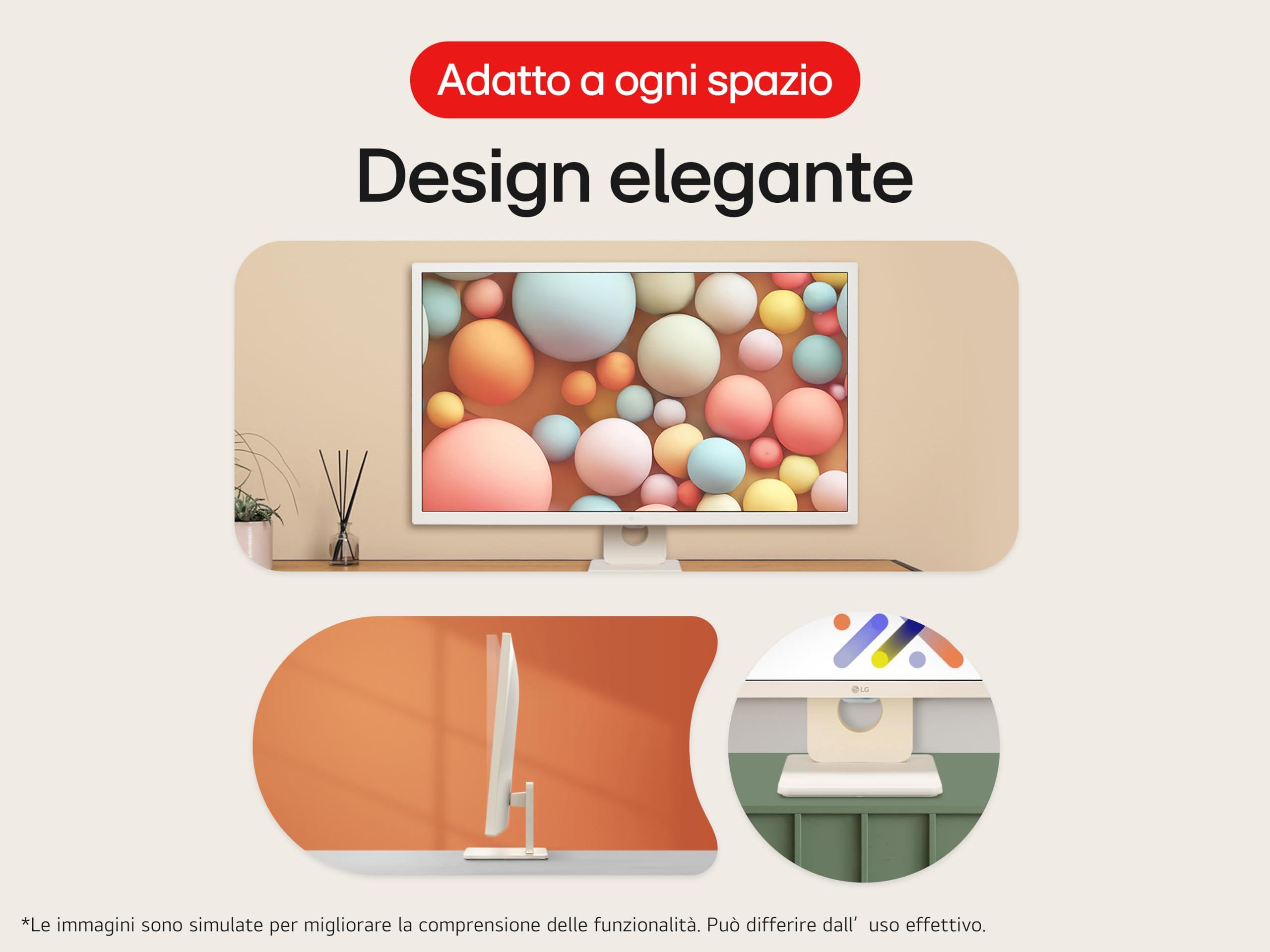 LG 32U721SA Monitor Smart 32" 4K, HDR, webOS con app di streaming, Wi-Fi, Bluetooth, AirPlay, Screen Share, Browser Internet, Speaker Stereo 10W, USB-C (65W), HDMI, Hub USB, Telecomando, Bianco