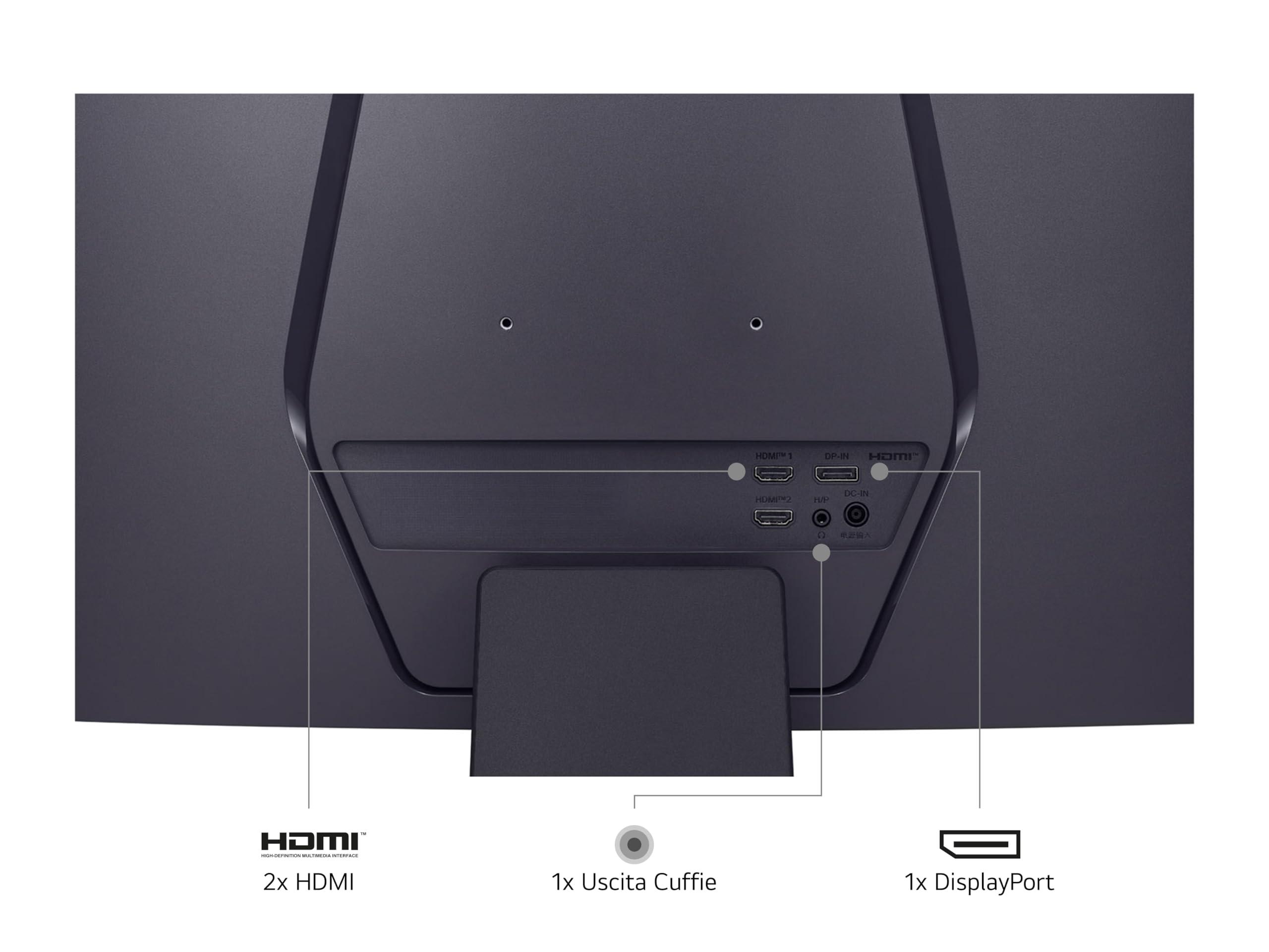 LG UltraGear 32GS60QC Monitor Gaming 32" Curvo QHD (2560x1440), 180Hz, 1ms, AMD FreeSync Premium, HDR 10, HDMI 2.0, DisplayPort 1.4, AUX, Flicker Safe, Nero