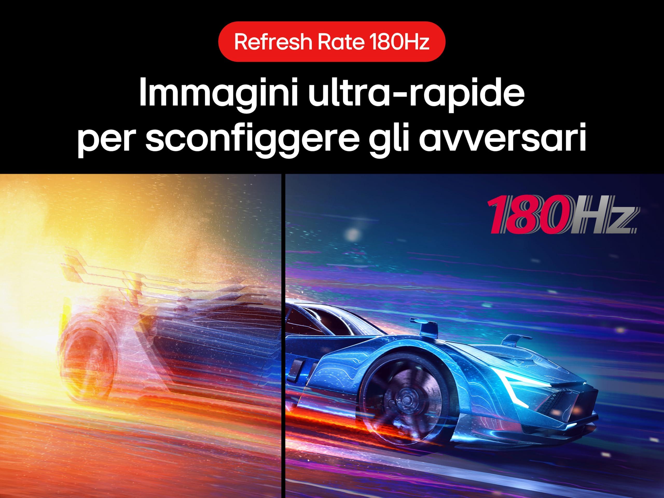 - REFRESH RATE 180HZ: visualizza più velocemente il frame successivo, per un'esperienza di gioco più fluida e una maggiore competitività sugli avversari.