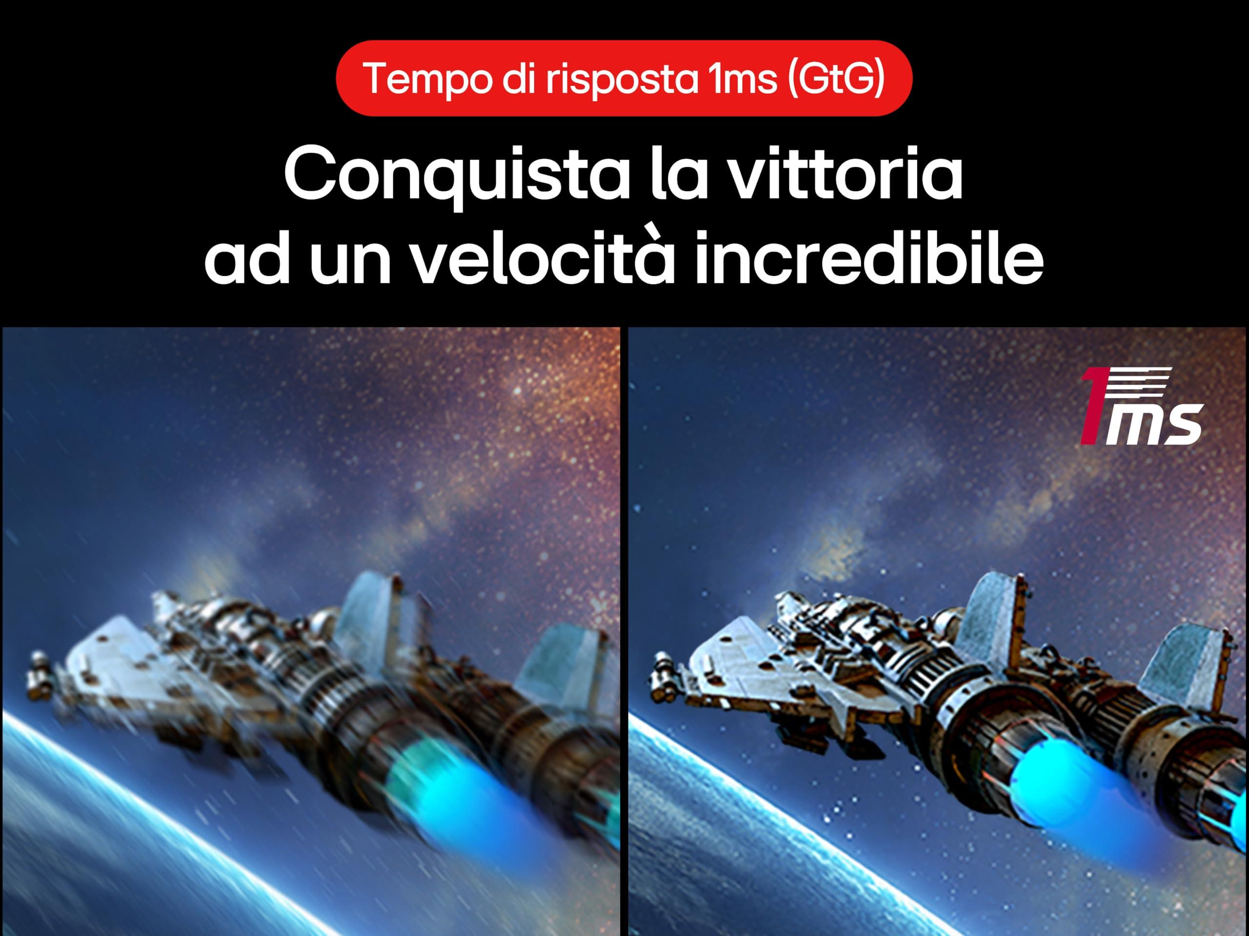 - TEMPO DI RISPOSTA 1MS: agevola la fluidità del gioco con sfocature ed effetto ghosting ridotti, per assicurarti un vantaggio competitivo rispetto agli avversari.