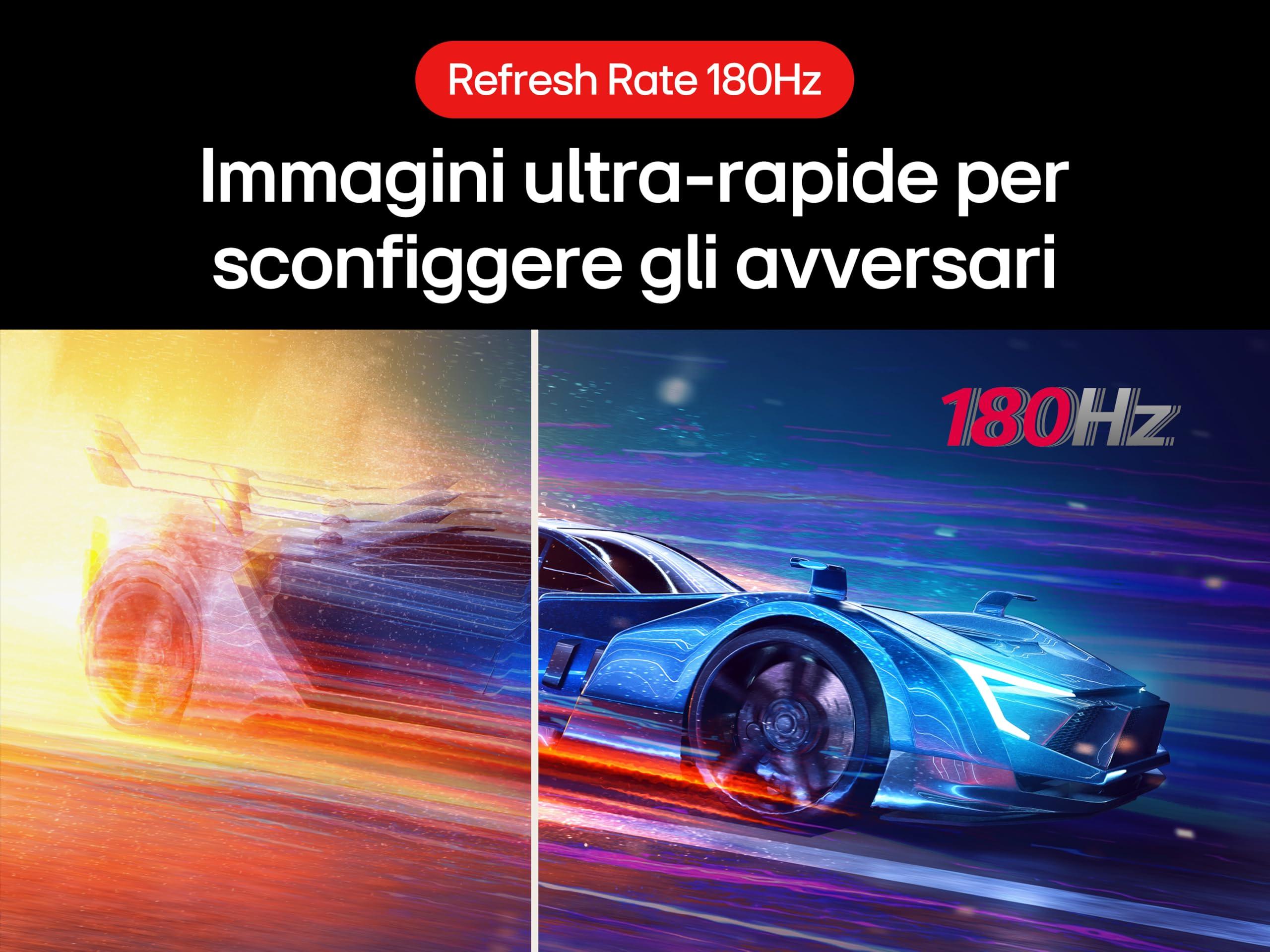 - REFRESH RATE 180HZ: visualizza più velocemente il frame successivo, per un'esperienza di gioco più fluida e una maggiore competitività sugli avversari.