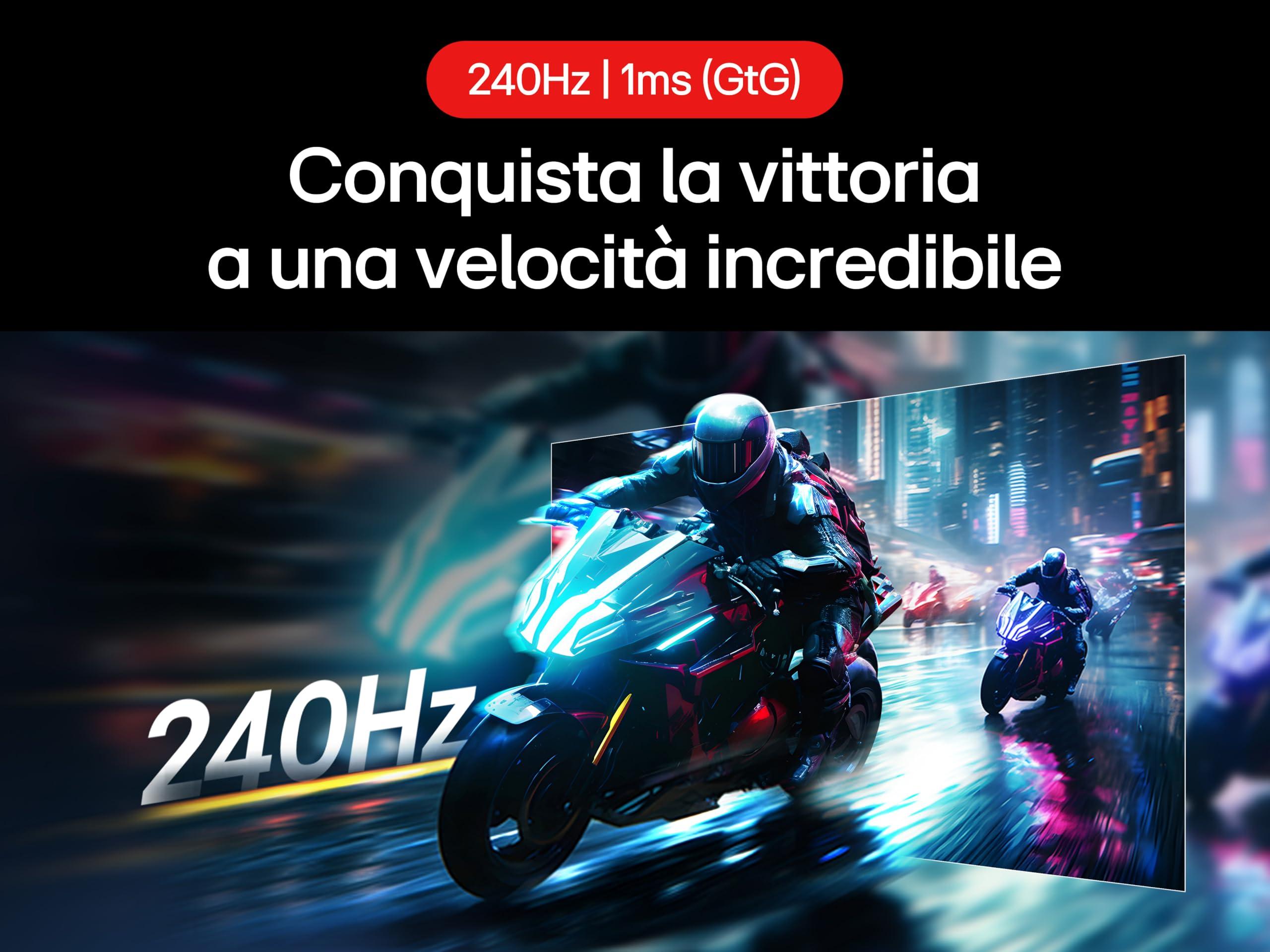 - REFRESH RATE 240Hz: straordinaria velocità, con VRR, per visualizzare più velocemente il frame successivo e godere di un'esperienza di gioco più fluida e competitiva