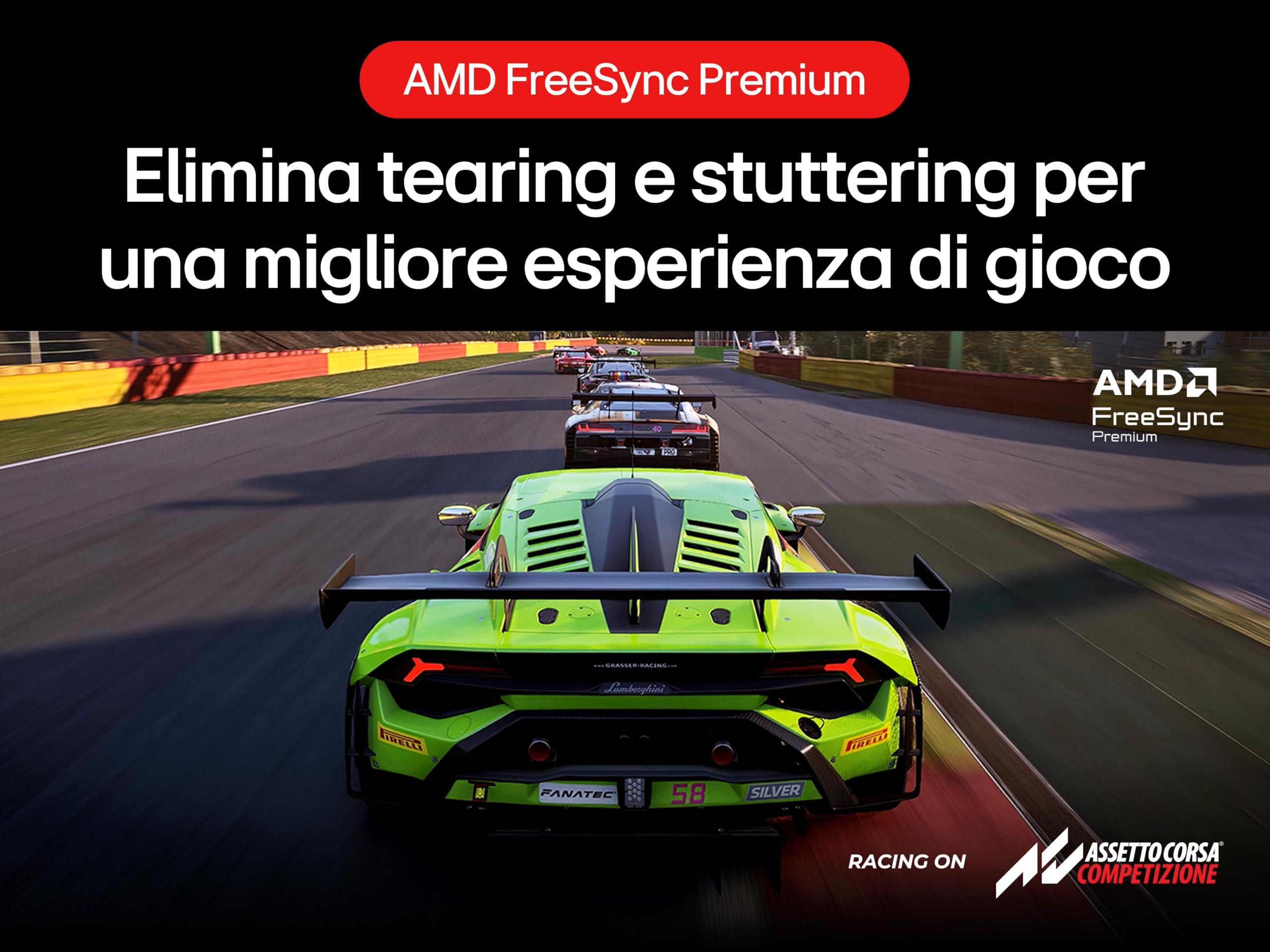 - AMD FREESYNC PREMIUM: sincronizzazione adattiva per eliminare gli effetti di tearing e stuttering e offrire un gameplay fluido e coinvolgente in ogni azione