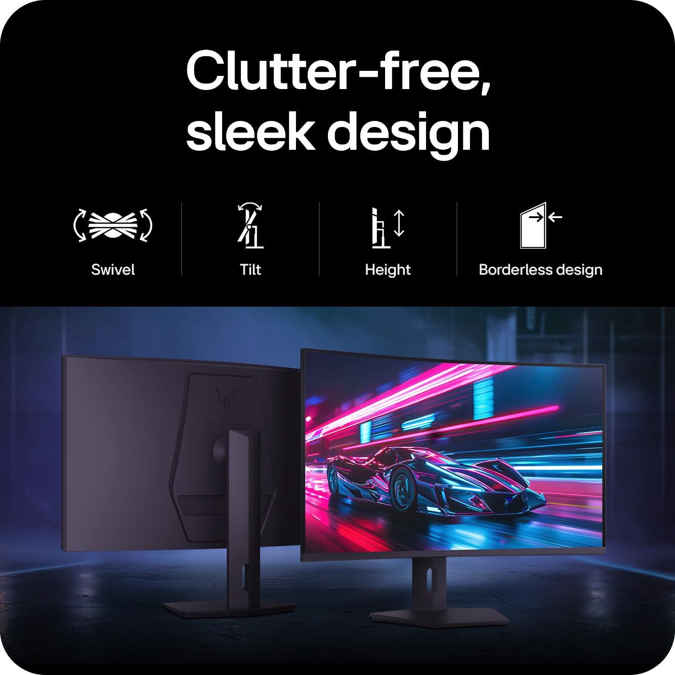 - Elegante design a 3 lati praticamente senza bordi con illuminazione esagonale immersiva, oltre a una base completamente regolabile per rotazione, inclinazione e altezza. Il supporto a L senza ingombri consente di risparmiare spazio sulla scrivania ed elimina le zone morte, mantenendo la configurazione pulita, moderna ed efficiente.