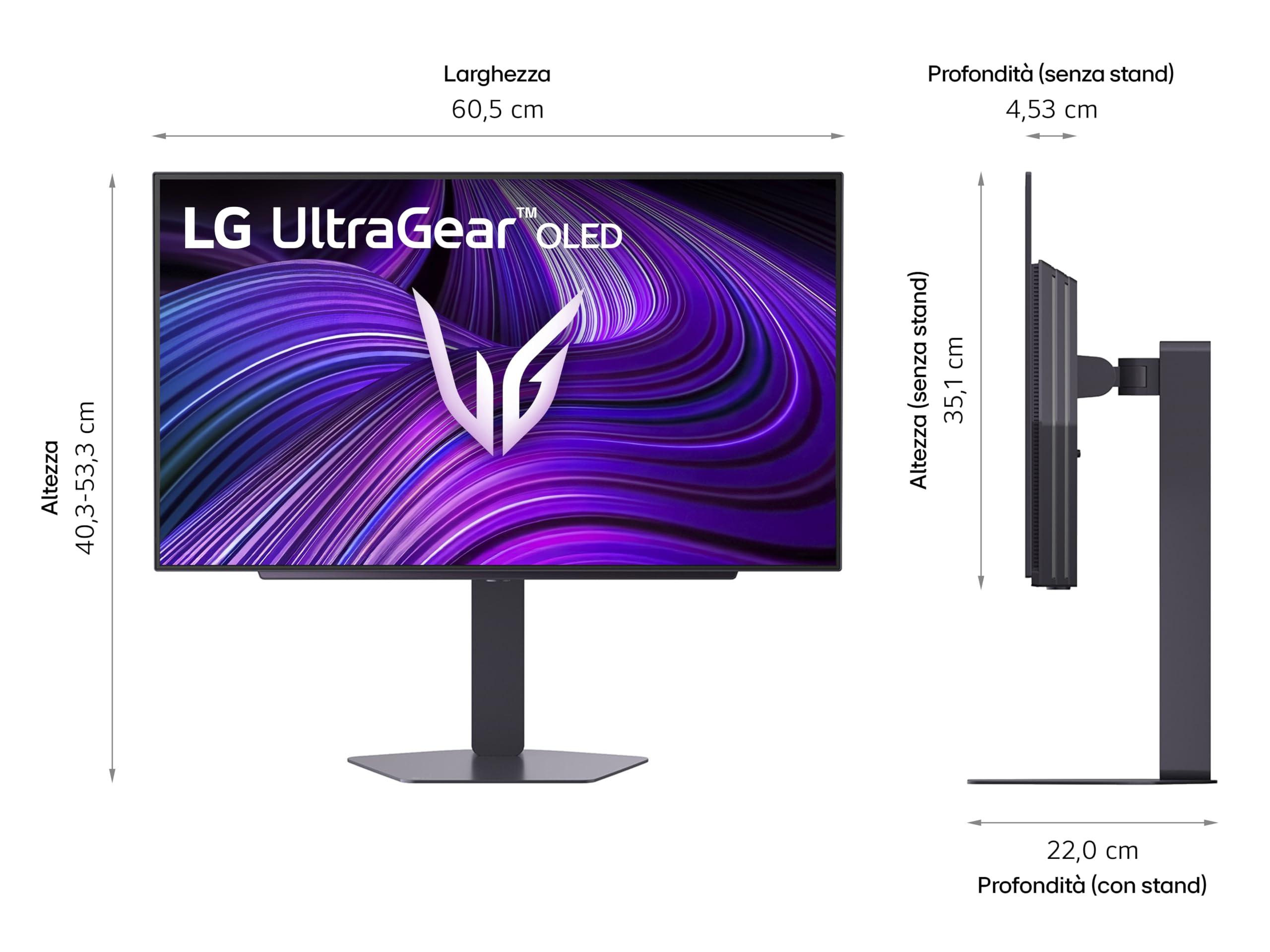LG UltraGear OLED 27GX704A Monitor Gaming 27" QHD (2560x1440), 240Hz, 0,03ms (GtG), OLED, G-Sync, FreeSync Premium Pro, VRR, HDR 400 True Black, HDMI 2.1, DisplayPort, Hub USB, AUX, Nero