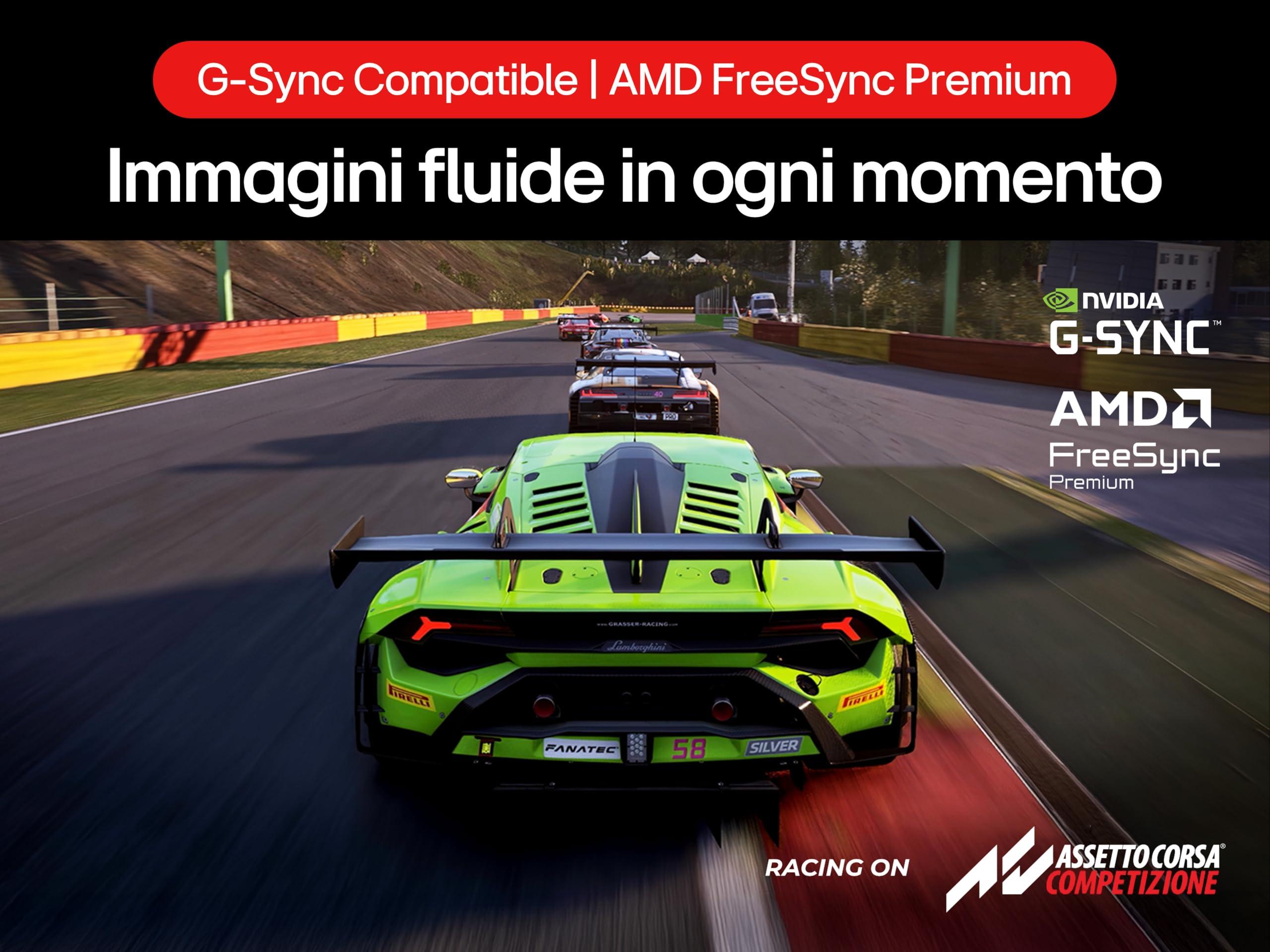 - G-SYNC, FREESYNC E ADAPTIVE SYNC: sincronizzazione adattiva per eliminare gli effetti di tearing e stuttering e offrire un gameplay fluido e coinvolgente in ogni azione