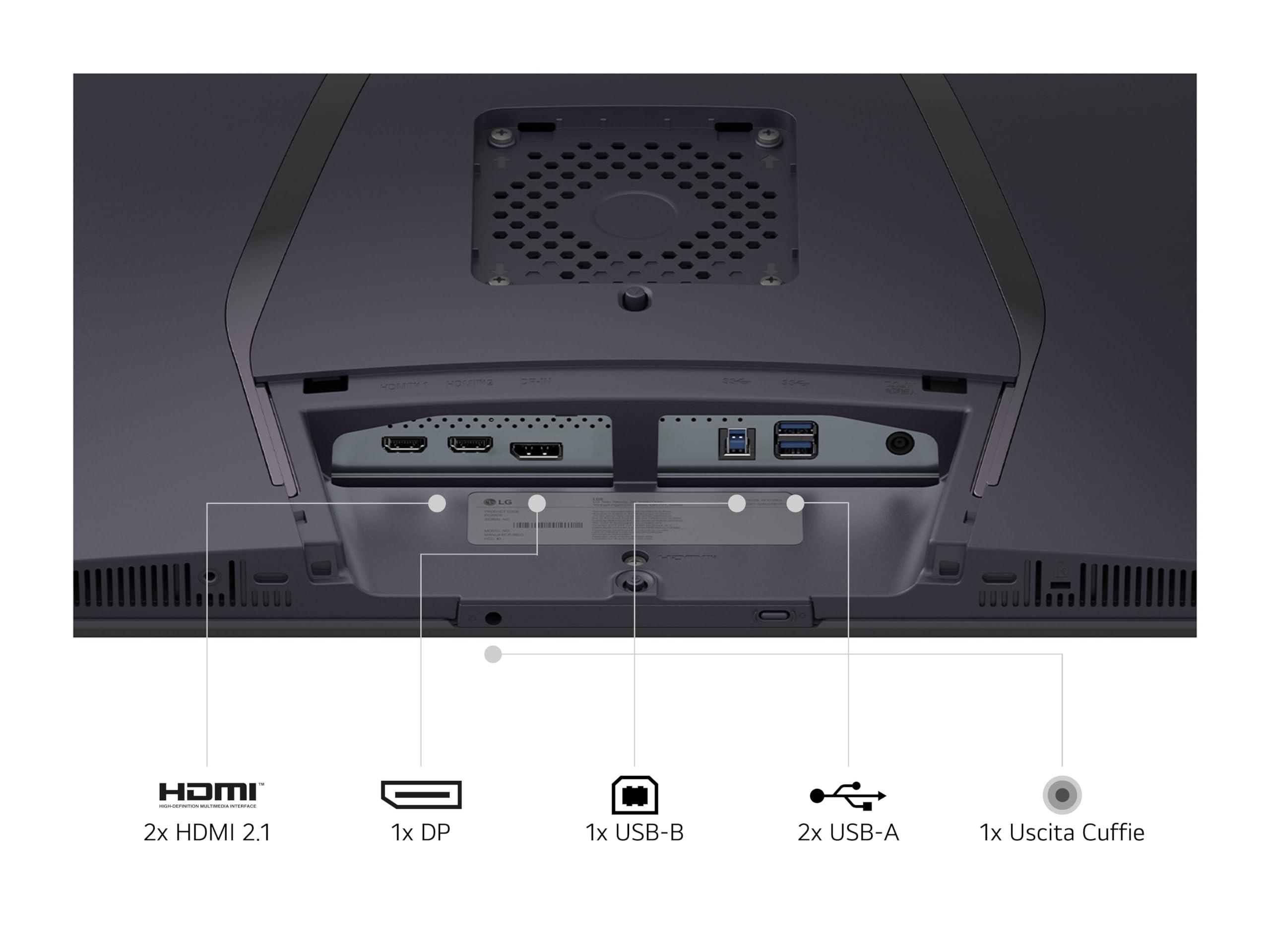 LG UltraGear OLED 32GX850A Monitor Gaming 32" UHD 4K 165Hz / FHD 330Hz, OLED 0,03ms (GtG), G-Sync Compatible, AMD FreeSync Premium Pro, VRR, HDR400 True Black, HDMI 2.1, DP, Hub USB, AUX, Nero