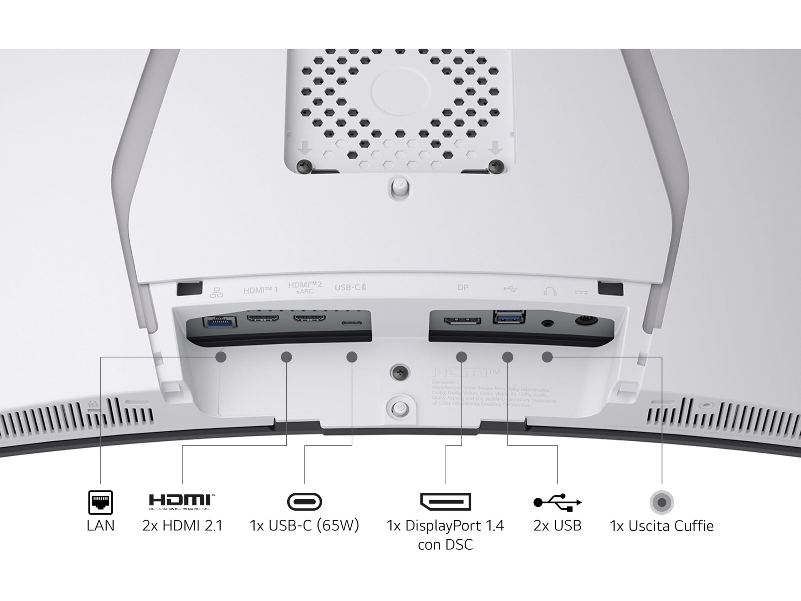 LG UltraGear OLED 34GX90SA Monitor Gaming 34", 21:9 curvo, WQHD (3440x1440), 240Hz, 0,03ms (GtG), Funzioni Smart con webOS 24, Speaker 14W, HDR 400 True Black, G-Sync, FreeSync, USB-C, WiFi, Bianco