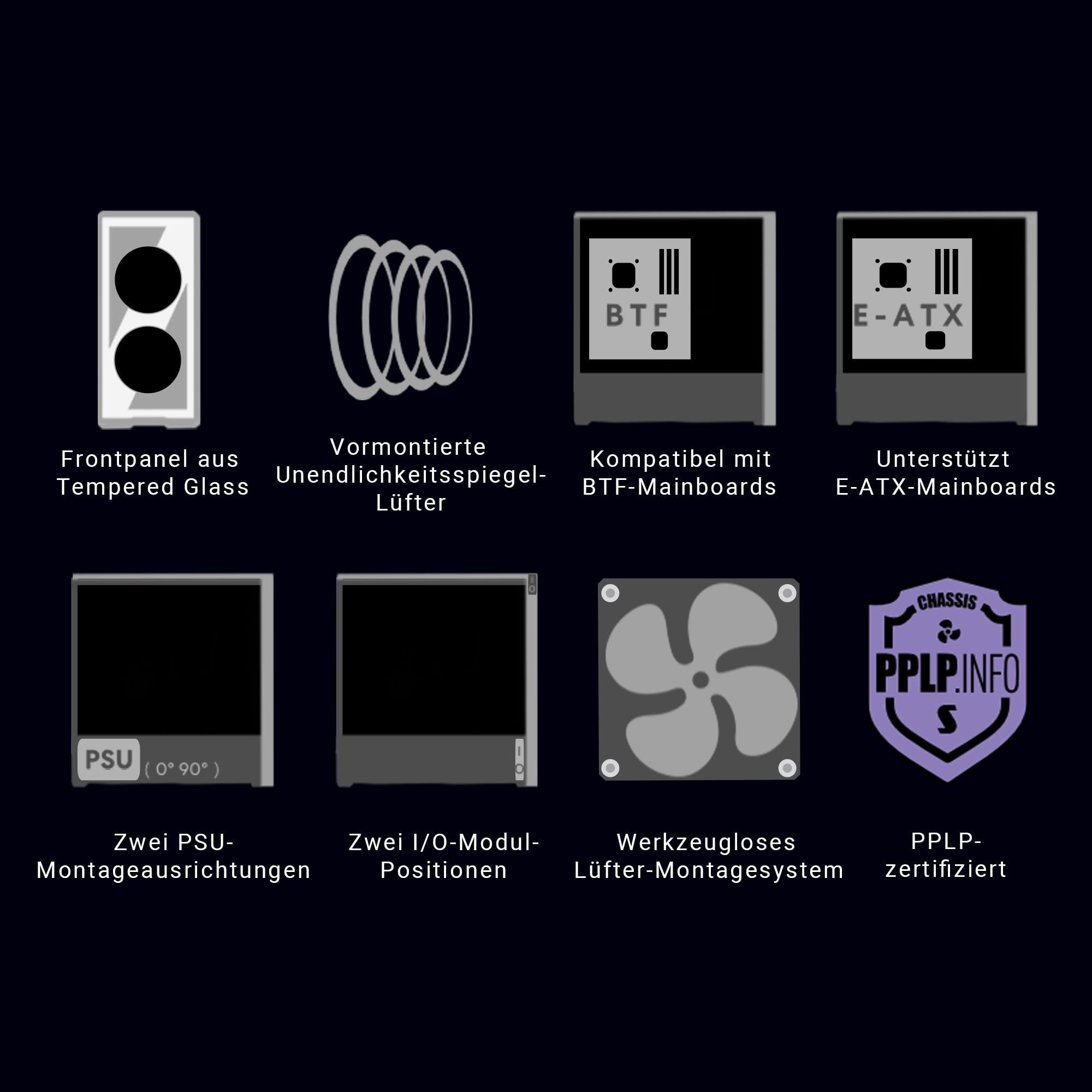 - Pannello frontale a specchio infinito, raffreddamento avanzato, design completamente regolabile, controllo dell'illuminazione RGB