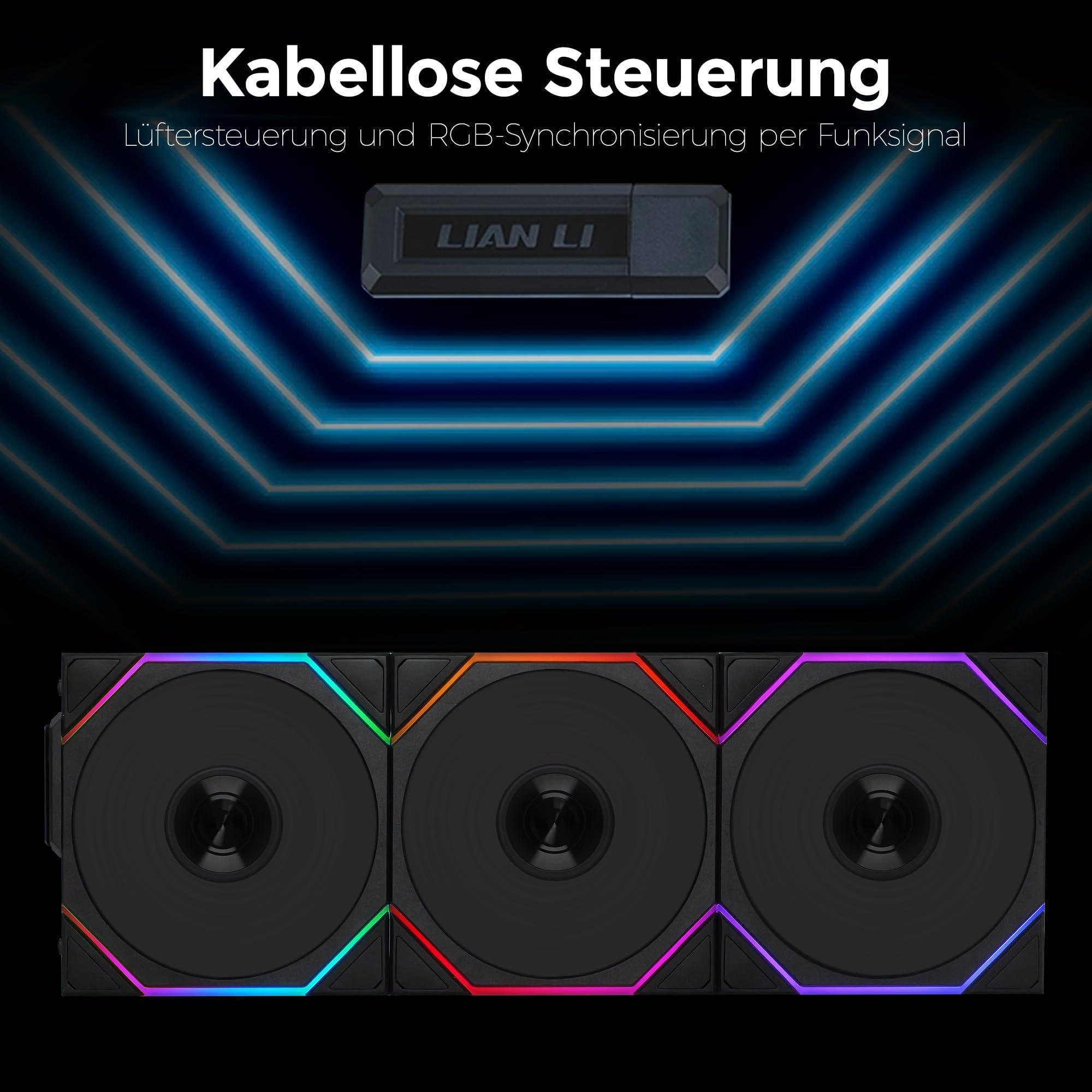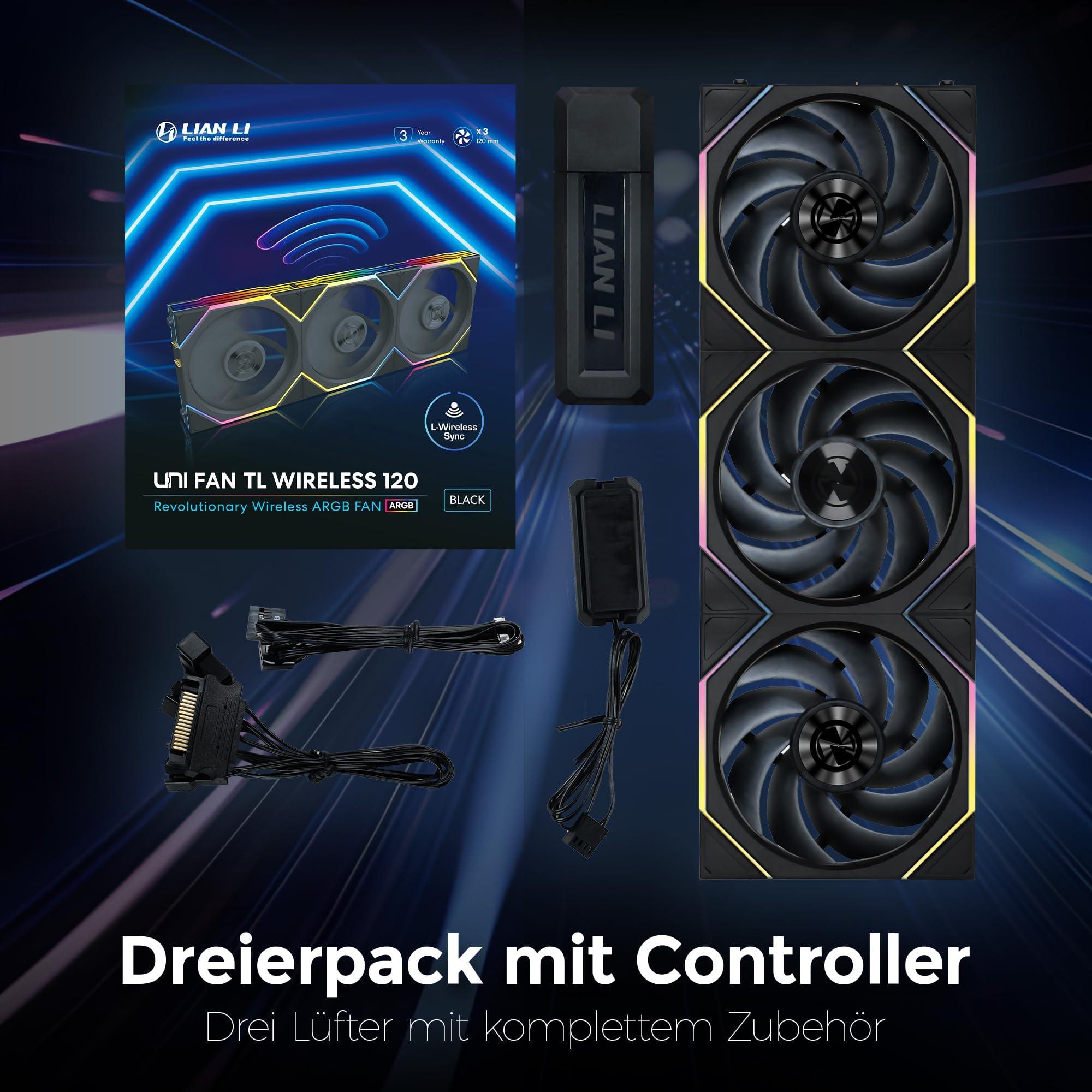 Lian Li UNI FAN TL Wireless Lüfter, ARGB, PWM, 3er-Pack - Reverse Blade, 120mm, schwarz