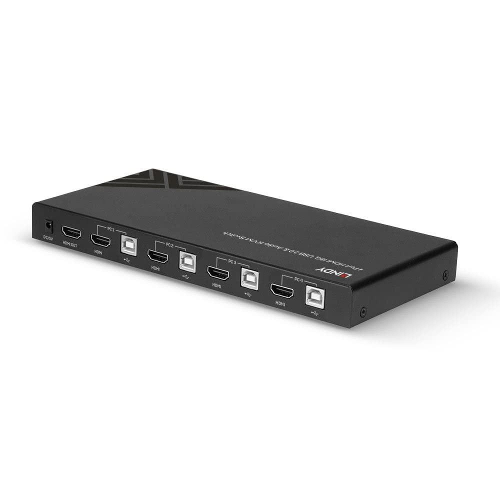 LINDY CONMUTADOR KVM HDMI 18G, USB 2.0 Y AUDIO, 4