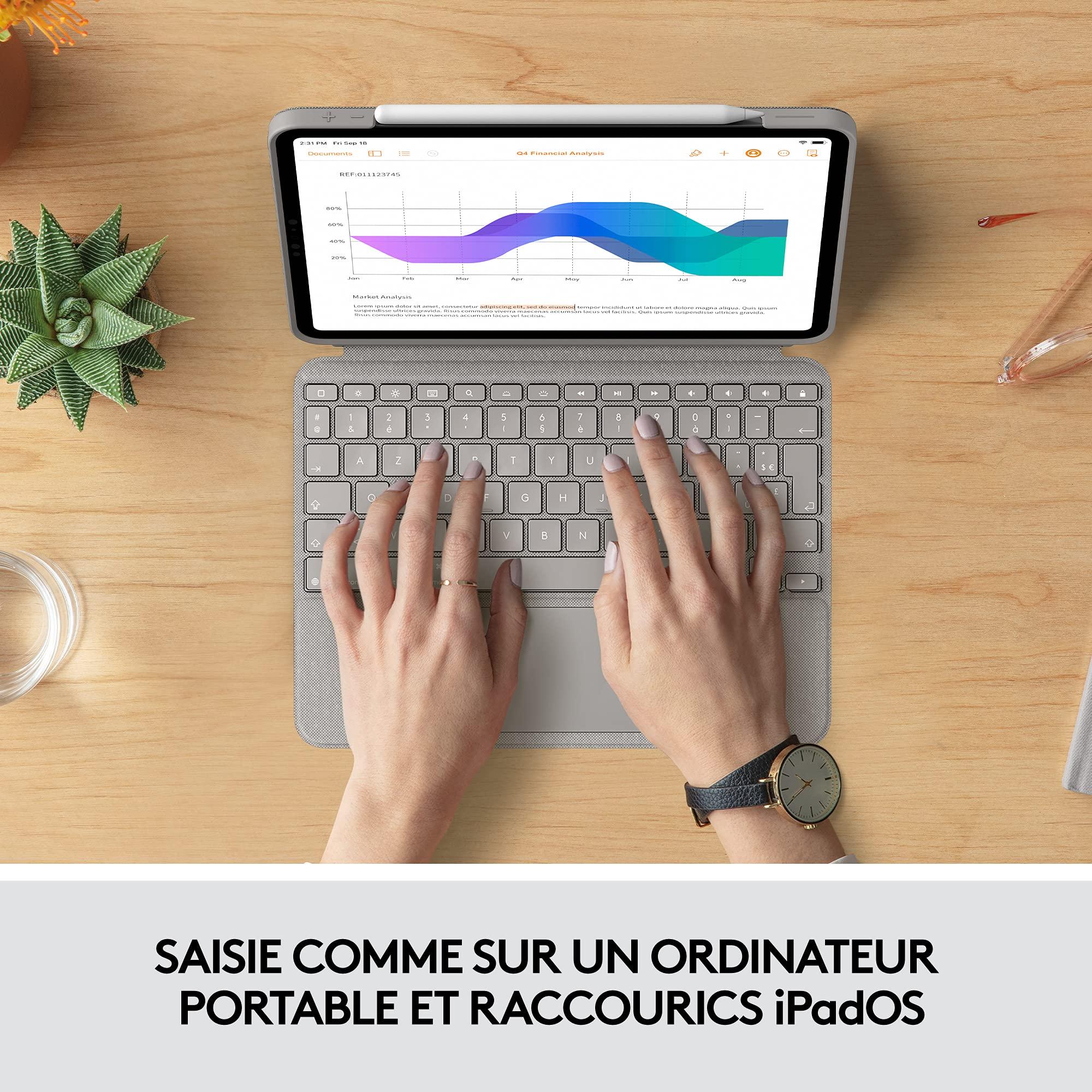 Logitech Combo Touch iPad Pro 11" (1a, 2a, 3a generazione - 2018, 2020, 2021) Custodia con tastiera retroilluminata rimovibile, Trackpad Click Anywhere, Smart Connector, Tastiera francese AZERTY -