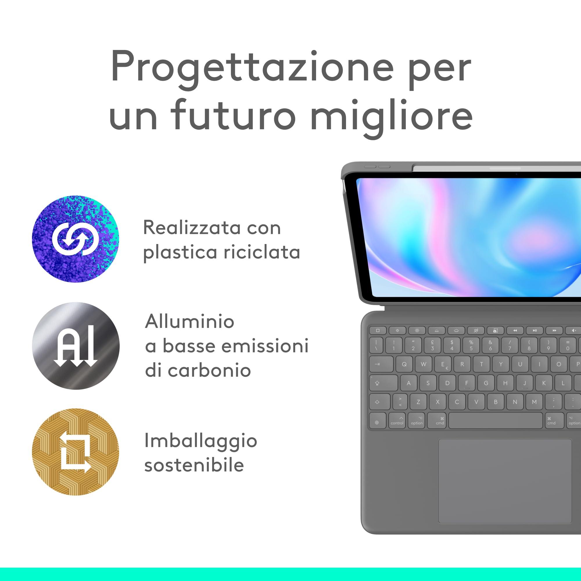 Logitech Combo Touch per iPad Air da 13 pollici (M2, M3 e M4) (2024, 2025, 2026), custodia con tastiera - staccabile retroilluminata supporto, digitazione comoda, modalità multiuso,ITA QWERTY - Grigio