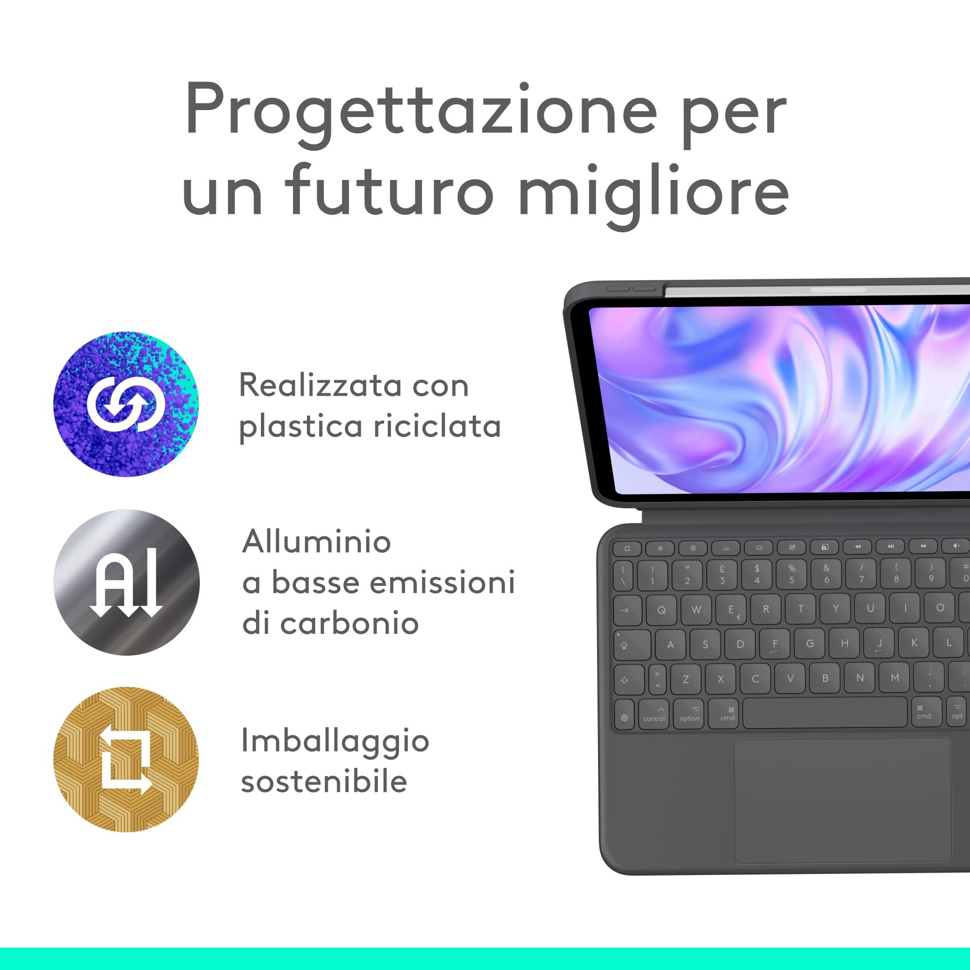 - Smart Connector: la custodia con tastiera Combo Touch per iPad Pro offre una connettività fluida, istantanea e sicura senza bisogno di ricarica: è alimentata dal tuo iPad