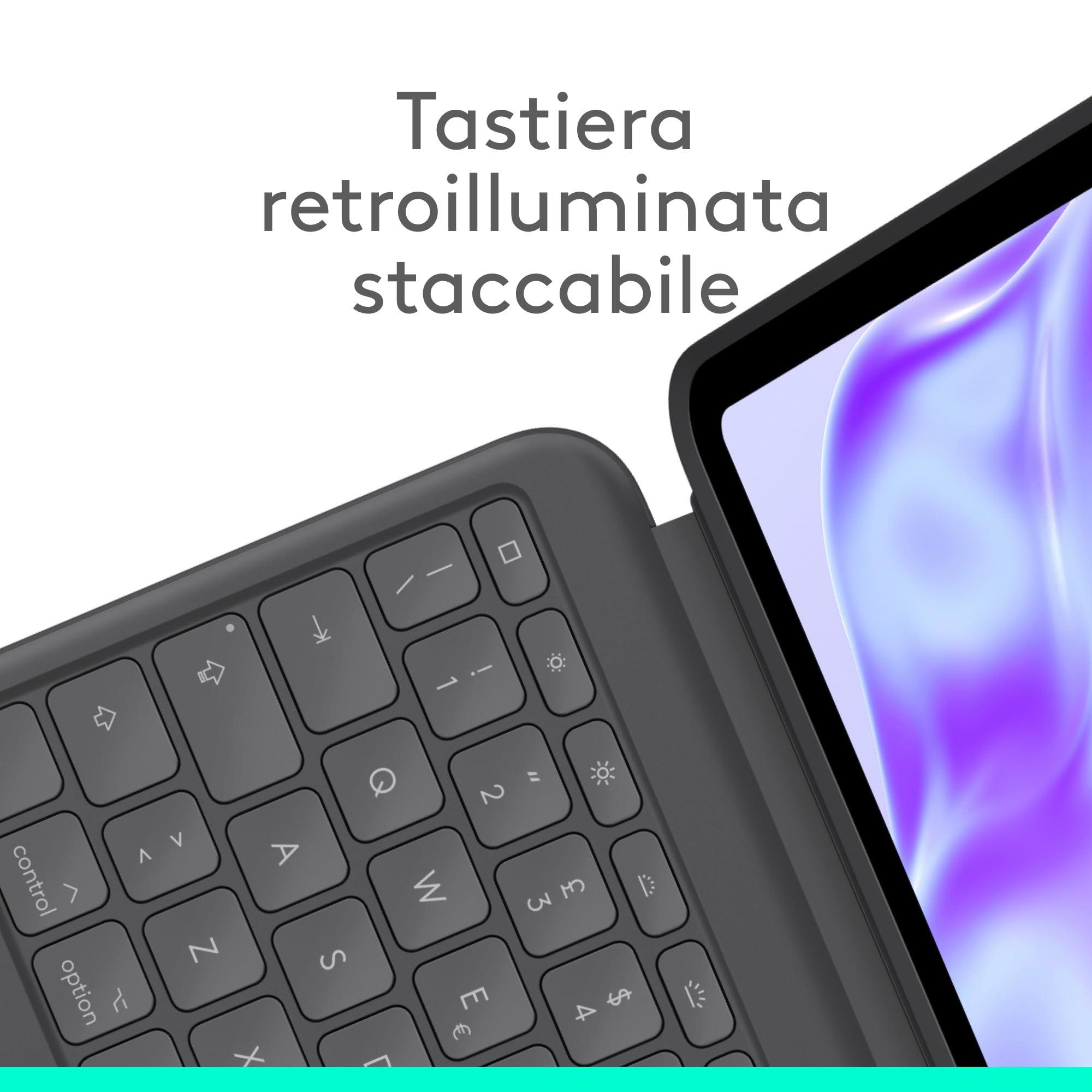 Logitech Combo Touch per iPad Pro da 13 pollici (M4)(2024) Custodia con tastiera - Tastiera staccabile retroilluminata con supporto, digitazione comoda, modalità multiuso, Layout ITA QWERTY - Grafite