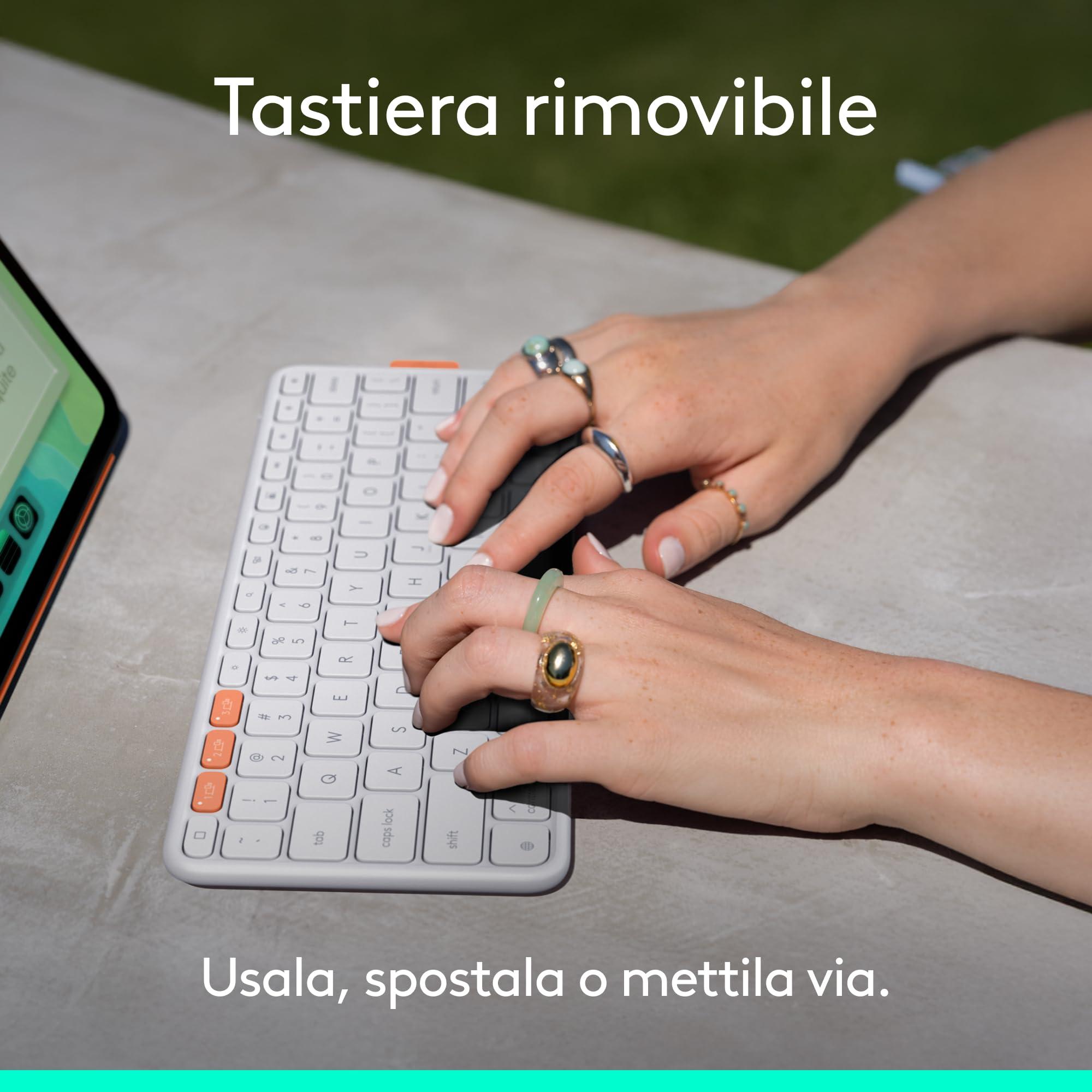 - Tastiera wireless compatta e ripiegabile: estraila, posizionala in qualsiasi luogo e riattaccala facilmente alla custodia con meccanismo magnetico