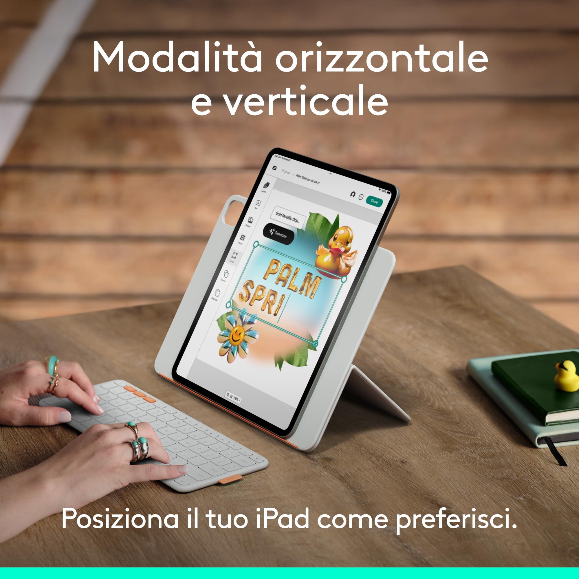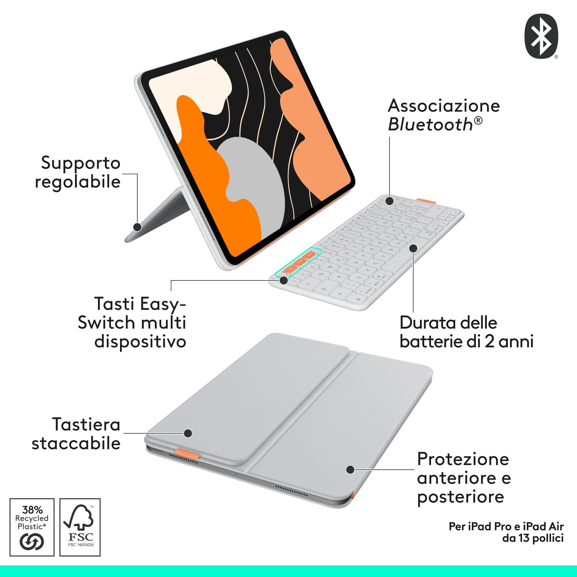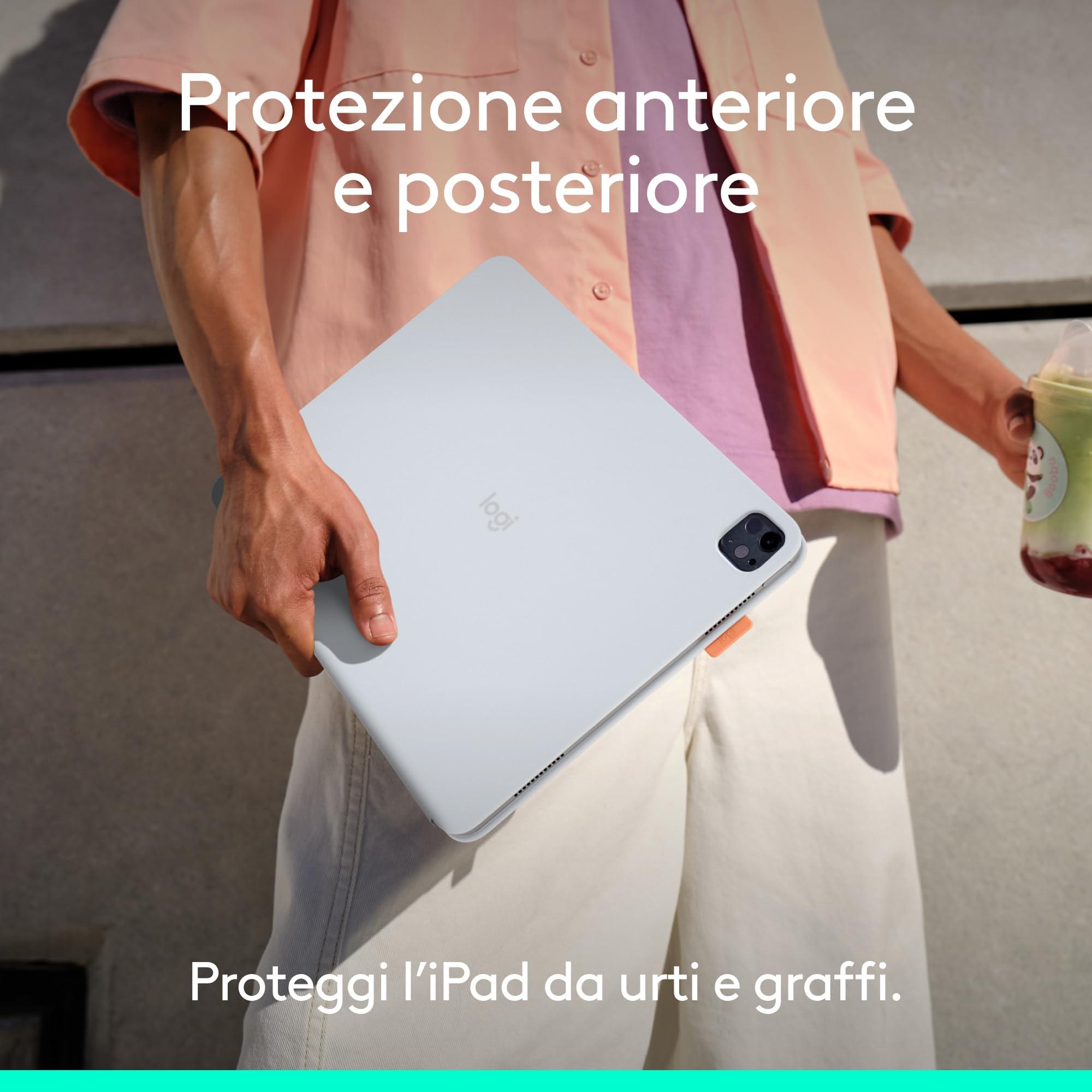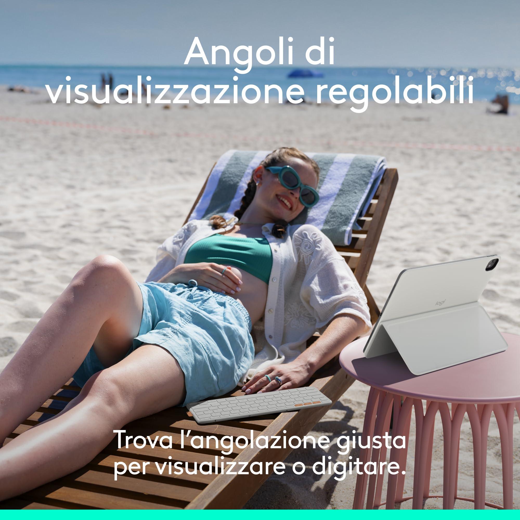 Logitech Flip Folio, custodia con tastiera per iPad Pro (M4) e iPad Air da 13 pollici(M2 e M3)(2024, 2025) protettiva e ripiegabile,più tastiera multi dispositivo Bluetooth,ITA QWERTY - Grigio Pallido