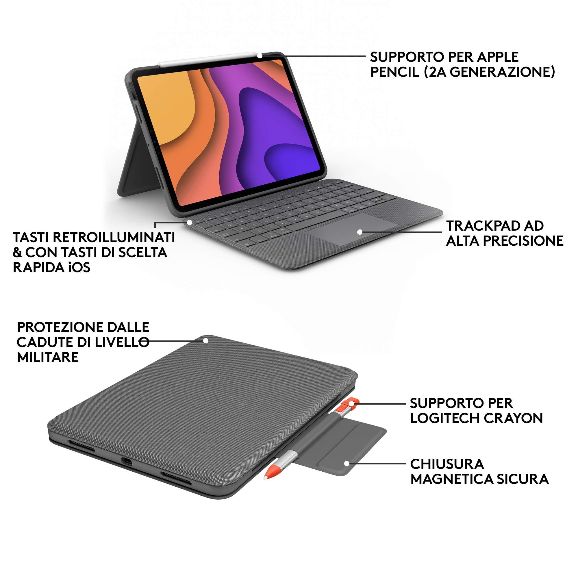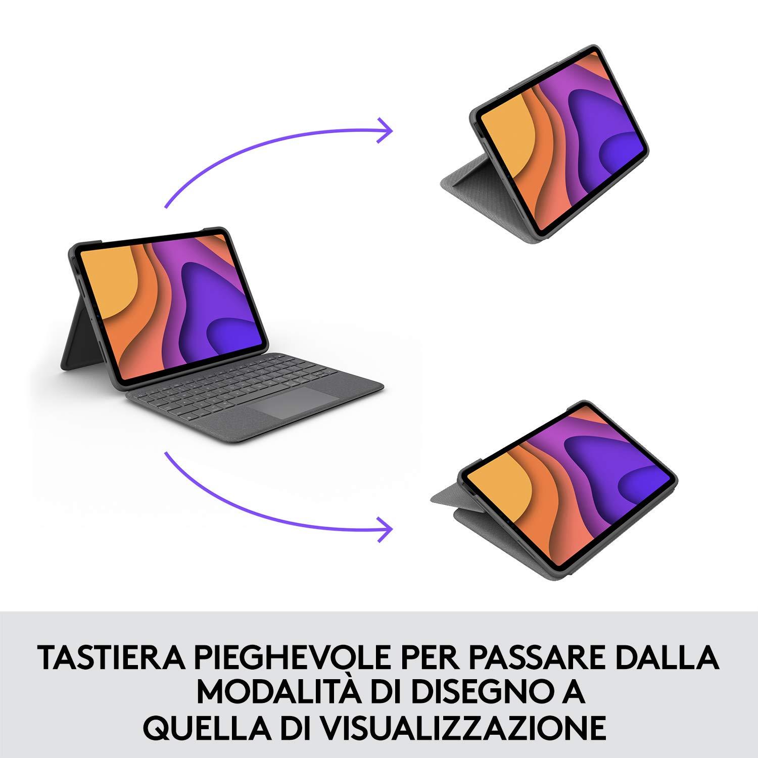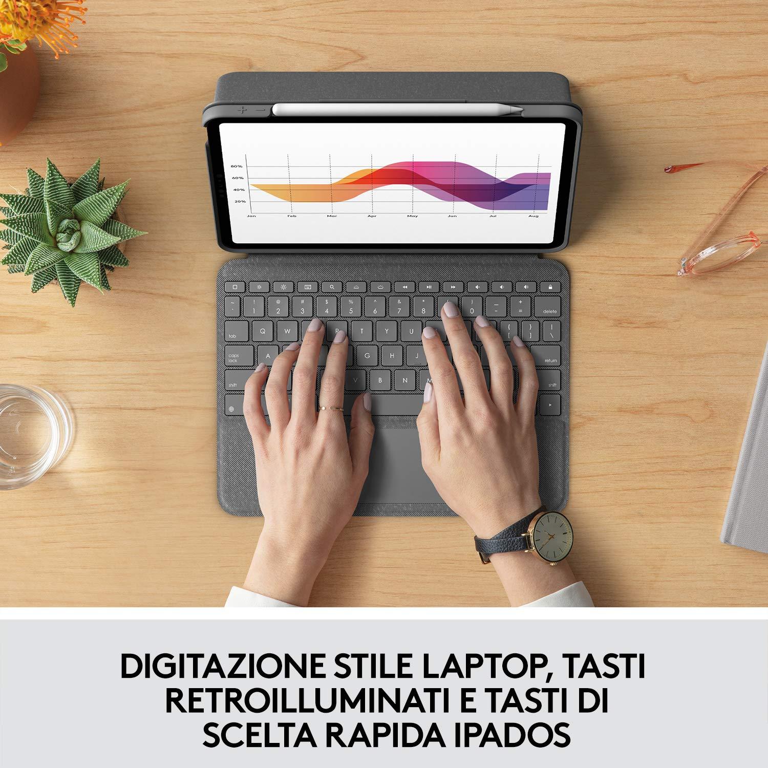 Logitech Folio Touch Custodia iPad con Tastiera, per iPad Air 4a Gen, 5a Gen, 2020, 2022, Layout Tedesco QWERTZ - Grigio