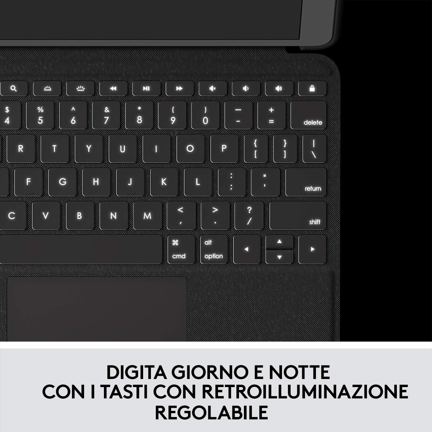 - Digitazione comoda come su laptop: L’ampia tastiera con una buona spaziatura contenente una fila completa di tasti di scelta rapida per iPadOS consente di digitare comodamente con velocità e precisione.
