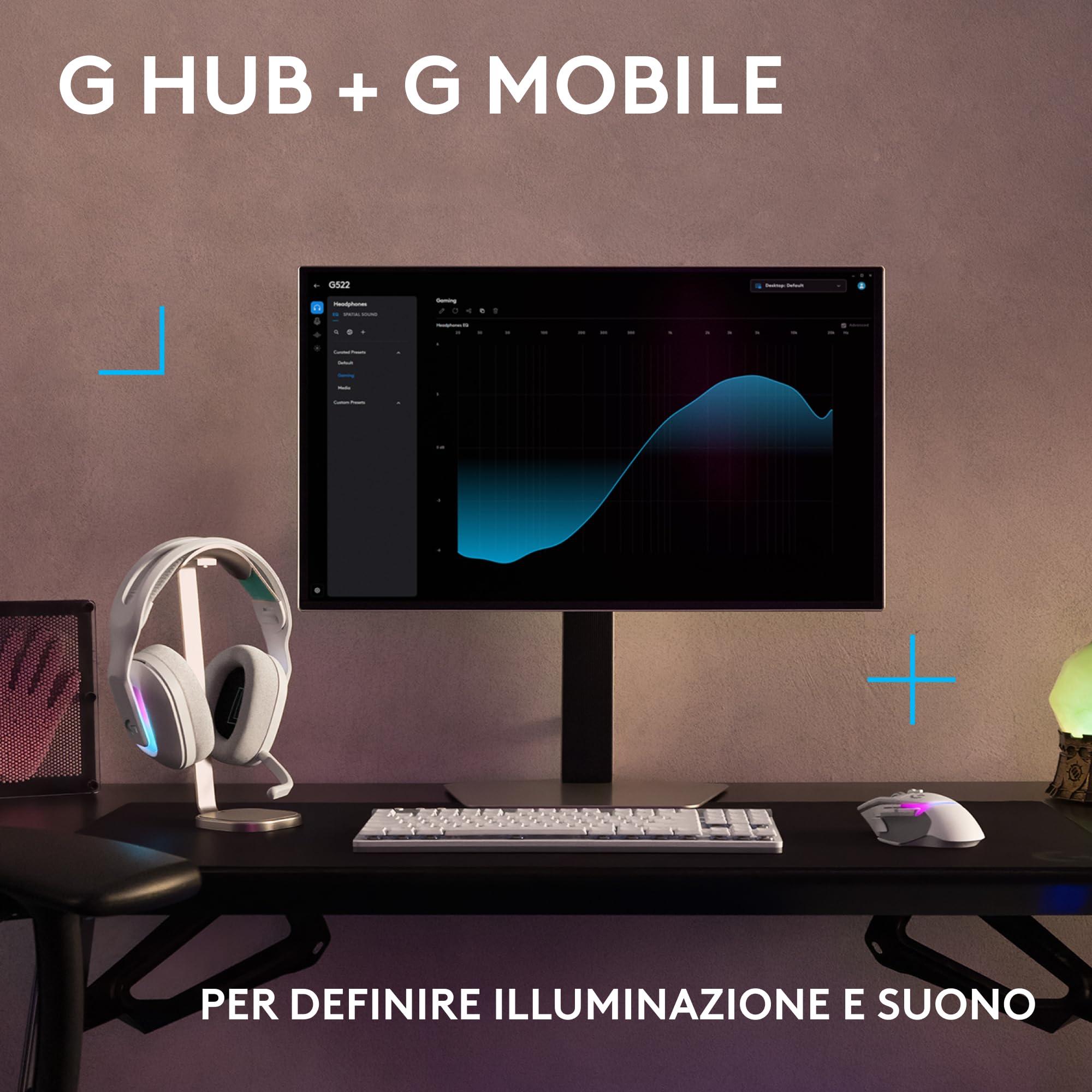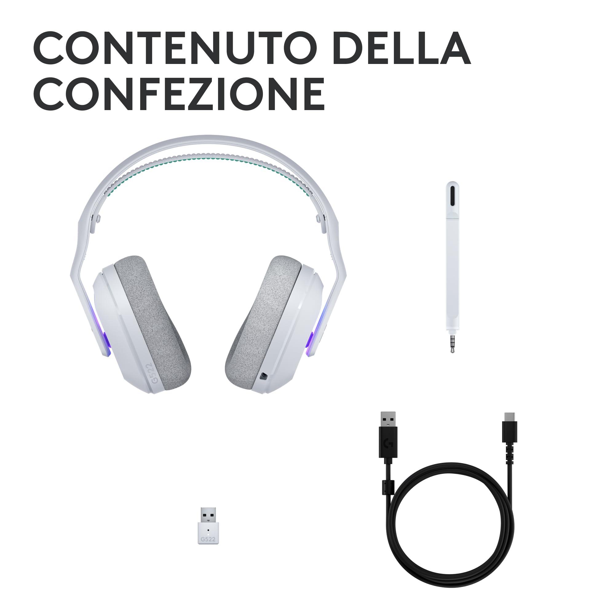 Logitech G G522 LIGHTSPEED, cuffia con microfono gaming wireless, microfono a banda completa, audio avanzato, Tri-Connect (LIGHTSPEED, Bluetooth, da USB A a C), per PC, Nintendo Switch/Switch 2-Bianco