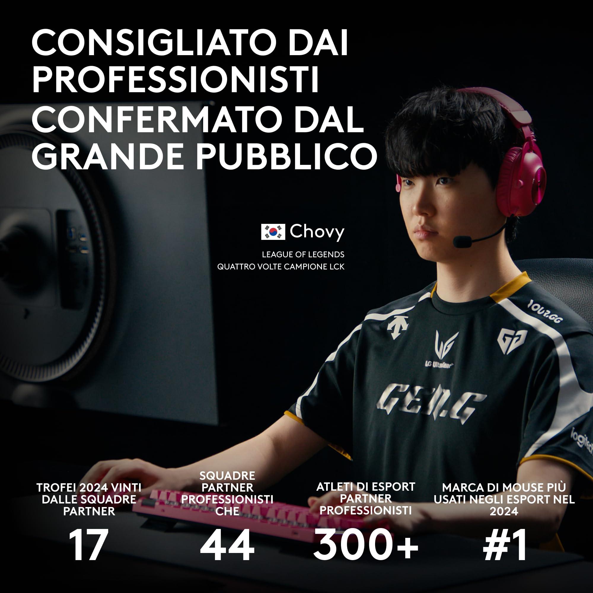Logitech G PRO 2 LIGHTSPEED Mouse da gioco senza fili, East Europe Pachage, fino a 4 pulsanti laterali magnetici personalizzabili e commutabili, ricarica USB-C, sensore da 32k DPI per PC/Mac