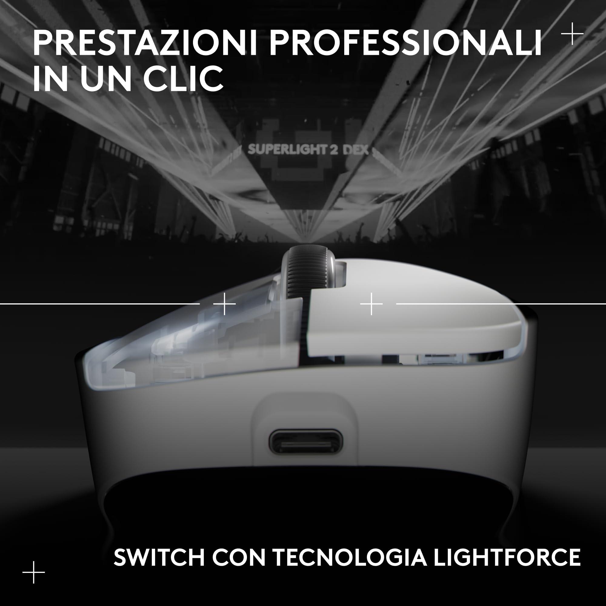 - Progettato con i professionisti, creato per vincere: progettato insieme ai migliori atleti al mondo negli e-sport, il mouse da gaming wireless PRO X SUPERLIGHT 2 DEX ti aiuta a dare il massimo e a esprimere il tuo potenziale