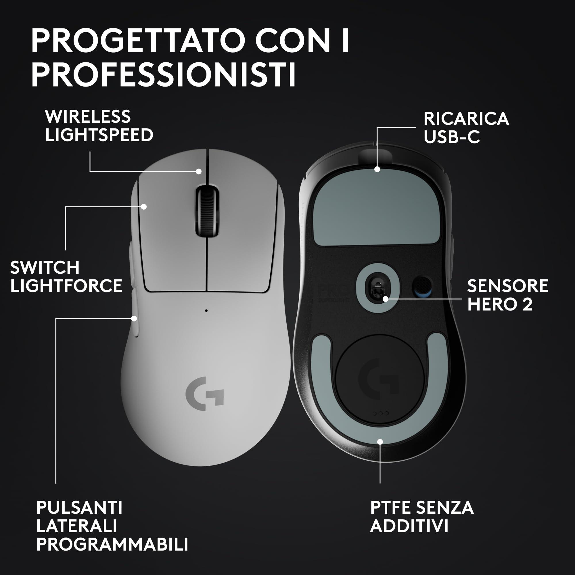 - Progettato con i professionisti, creato per vincere: progettato insieme ai migliori atleti al mondo negli e-sport, il mouse da gaming wireless PRO X SUPERLIGHT 2 DEX ti aiuta a dare il massimo e a esprimere il tuo potenziale