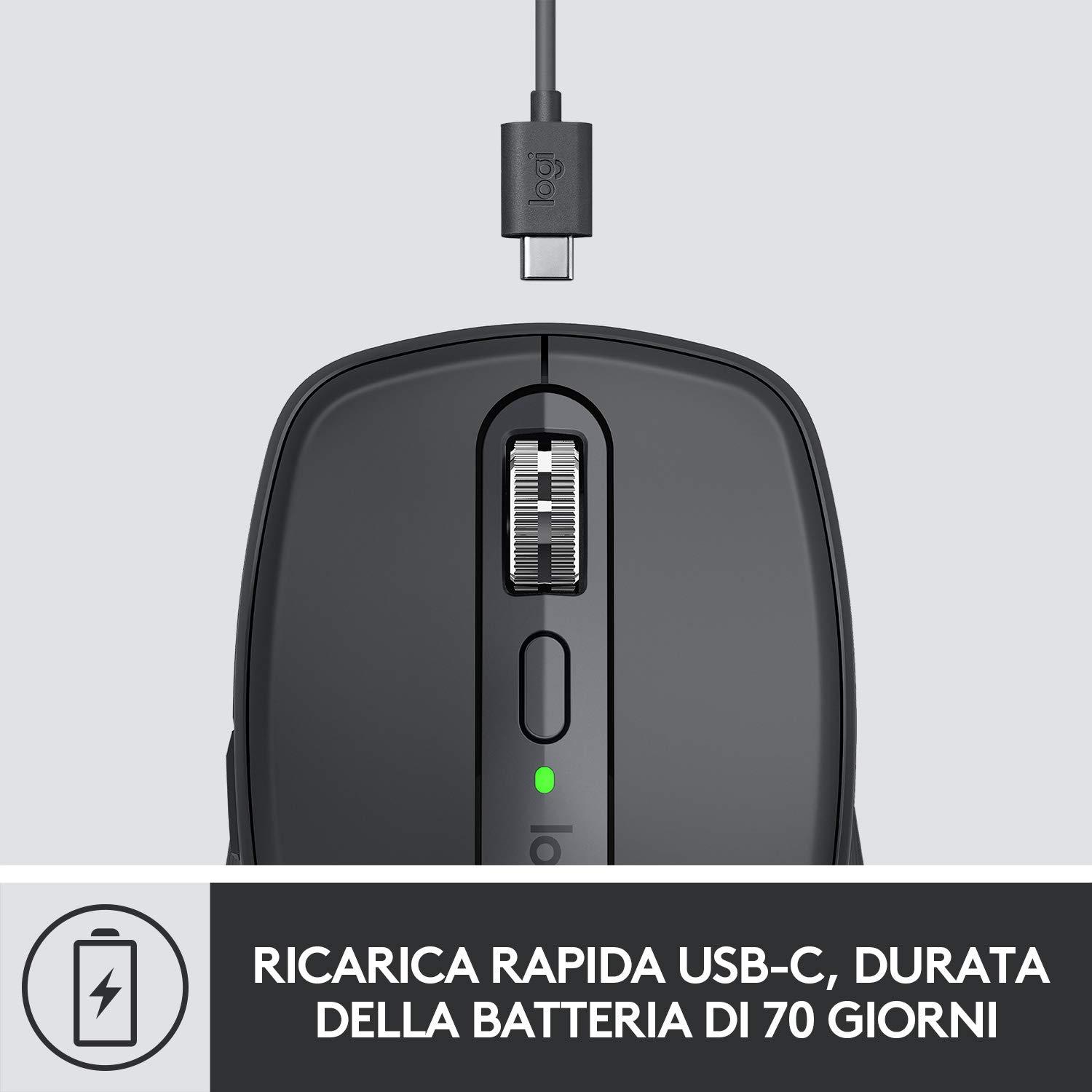 - COMFORT PORTATILE: MX Anywhere 3 viaggia sempre con te. Il design ergonomico con profilo ribassato accoglie la tua mano e le impugnature laterali in morbido silicone garantiscono massimo comfort