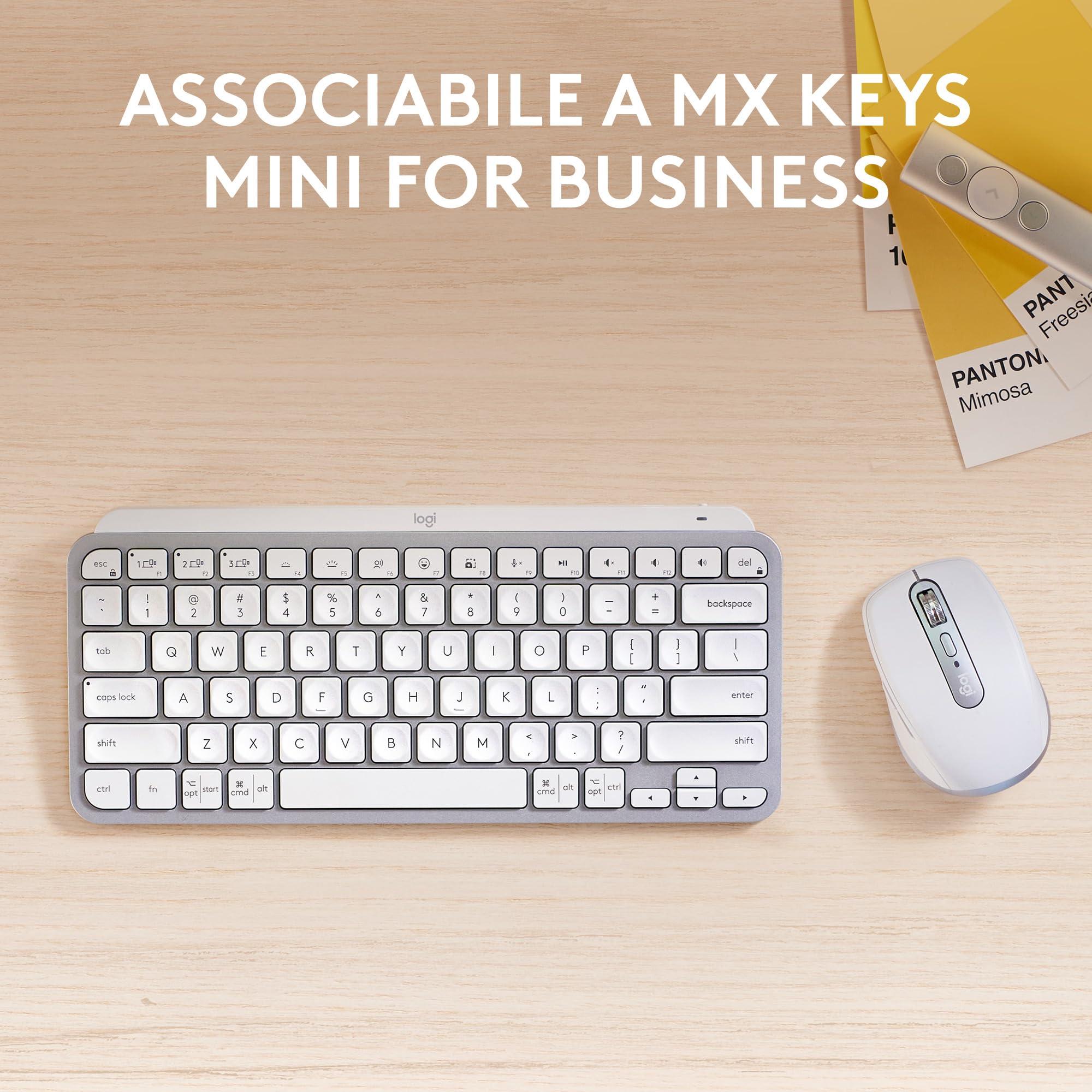 Logitech MX Anywhere 3S for Business - Mouse senza fili per professionisti, Windows/Mac/Chrome/Linux, Bluetooth, clic silenzioso, sicurezza Logi Bolt, compatto, 8K DPI, scorrimento MagSpeed-Pale Grey