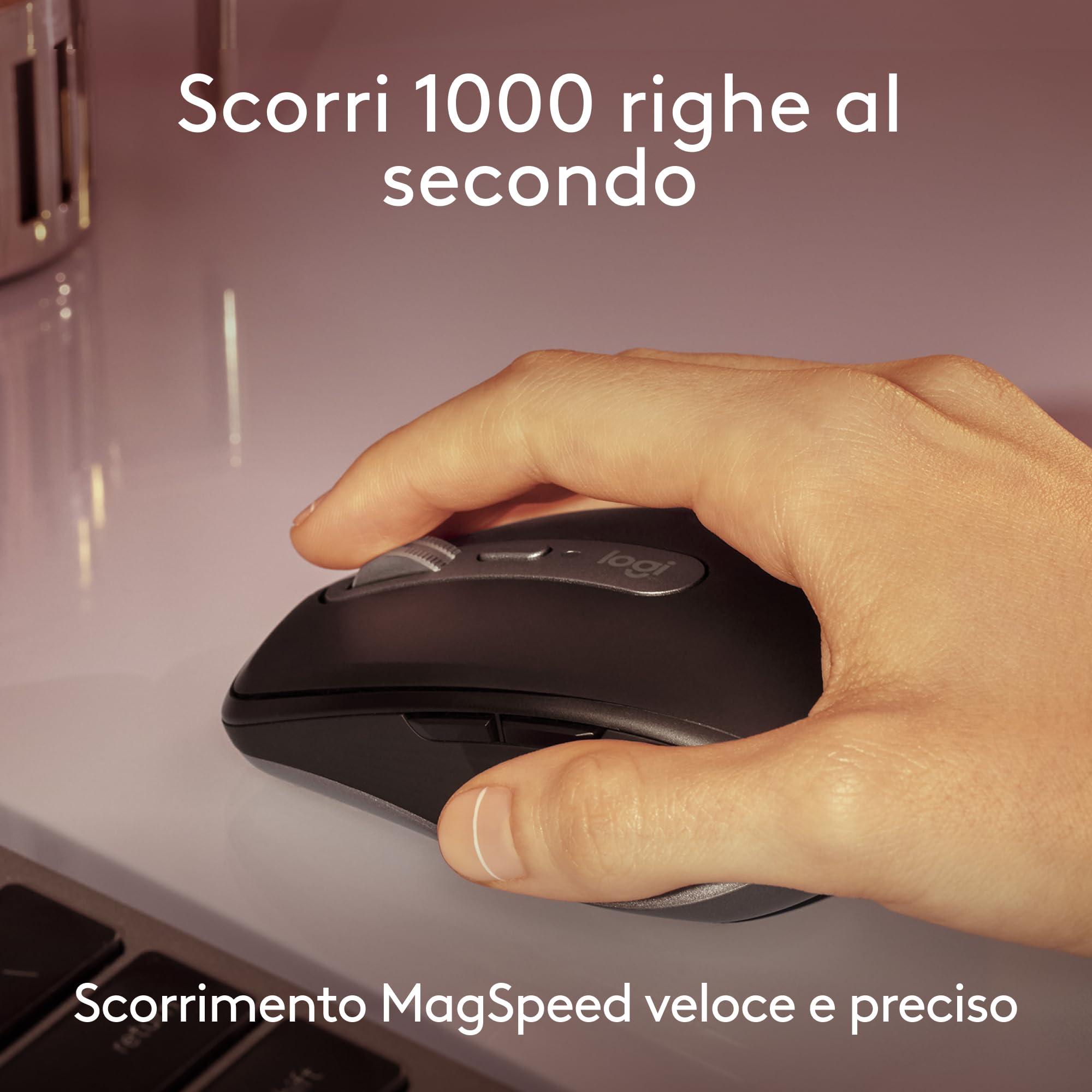 - Scorrimento di 1000 righe al secondo: mouse Logitech con MagSpeed, lo scroller più veloce (5) e preciso (4) di Logitech, per scorrere fino a 1000 righe al secondo e fermarsi su un singolo pixel