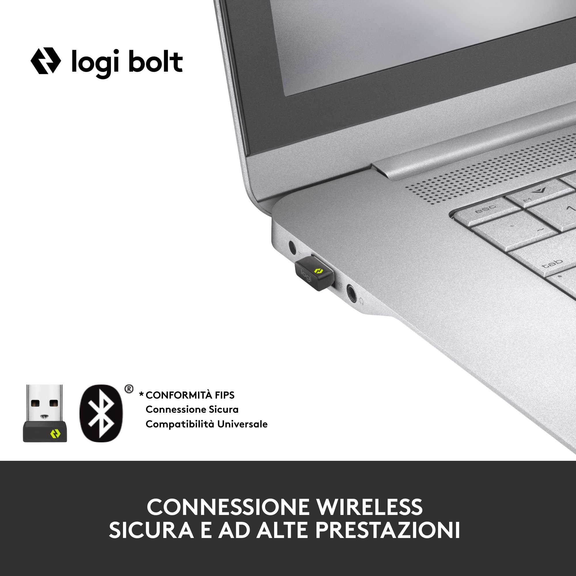 - Sicurezza aziendale: La tecnologia wireless Logi Bolt, con modalità Secure Connections Only, offre una connessione completamente crittografata, per la massima sicurezza.