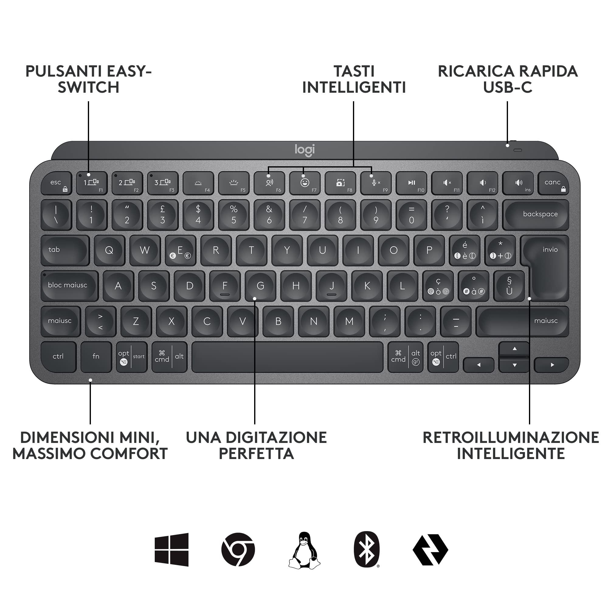 Logitech MX Keys Mini for Business - Tastiera wireless illuminata - compatta, ricevitore Logi Bolt, retroilluminazione, ricaricabile, Windows, macOS, Linux, iOS, Android, Italiano QWERTY - Grigio