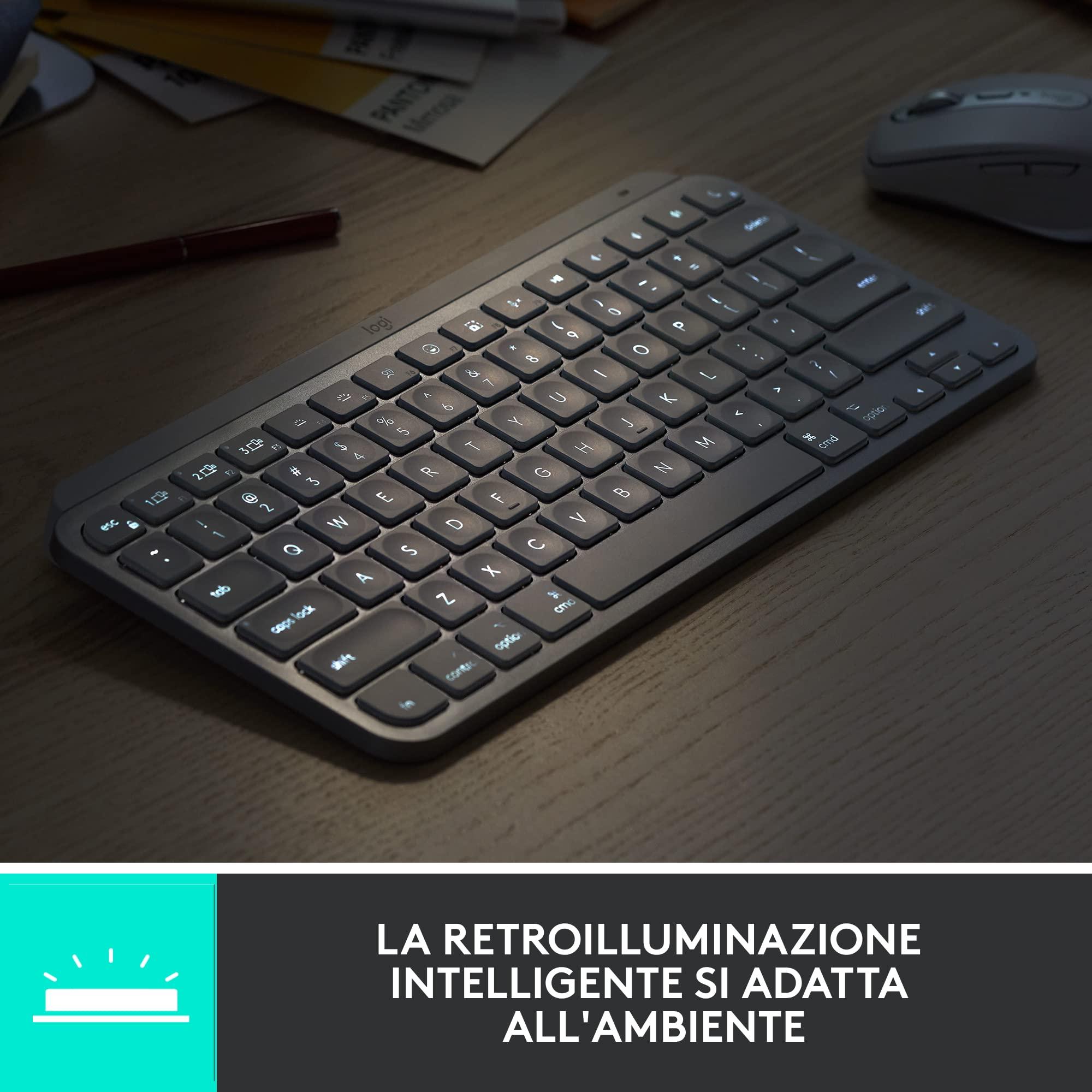 Logitech MX Keys Mini for Business tastiera wireless illuminata, compatta, tecnologia Logi Bolt, retroilluminazione, ricaricabile, Windows/Mac/Chrome/Linux, Italiano QWERTY - Grigio