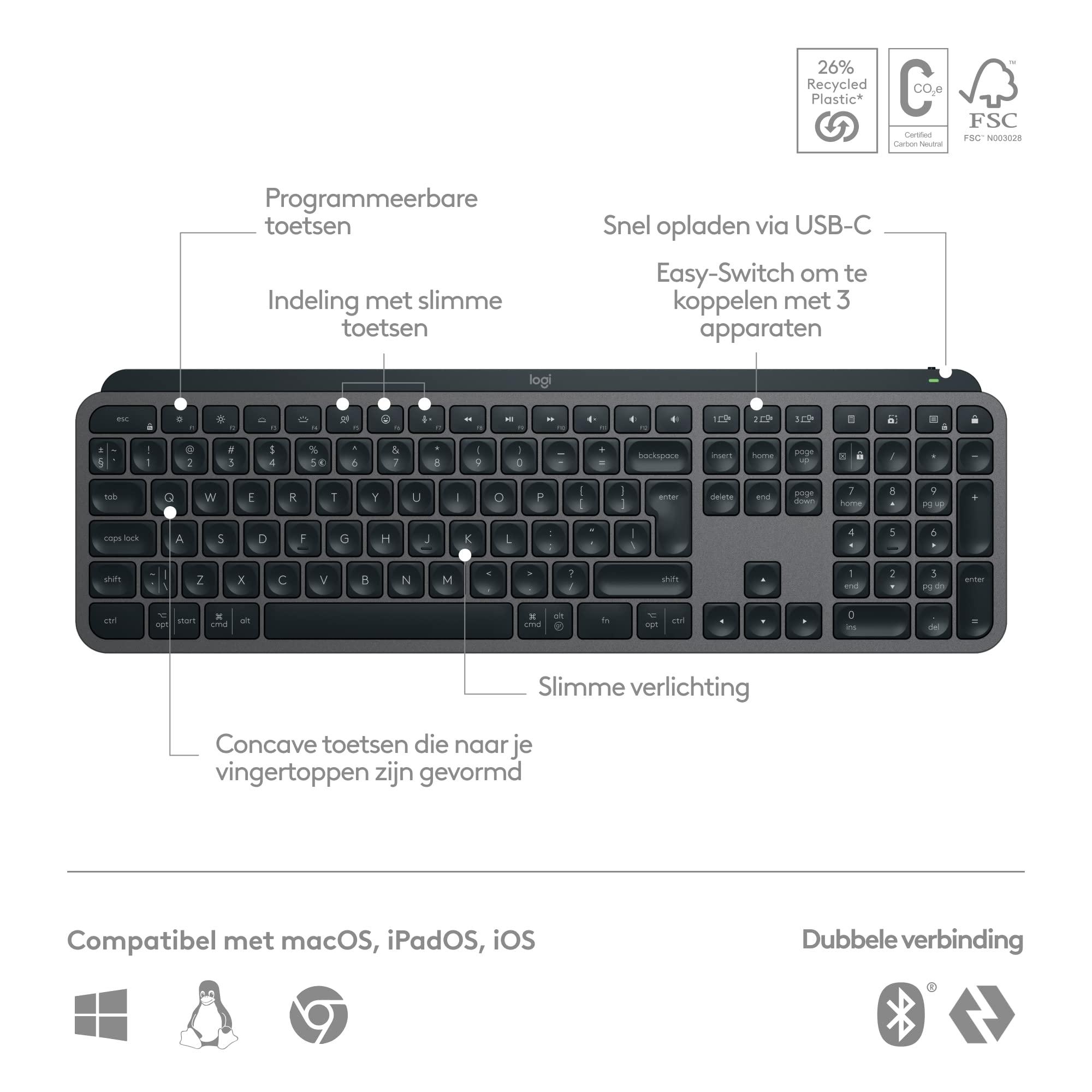 Logitech MX Keys S - Grafite, Layout Inglese QWERTY