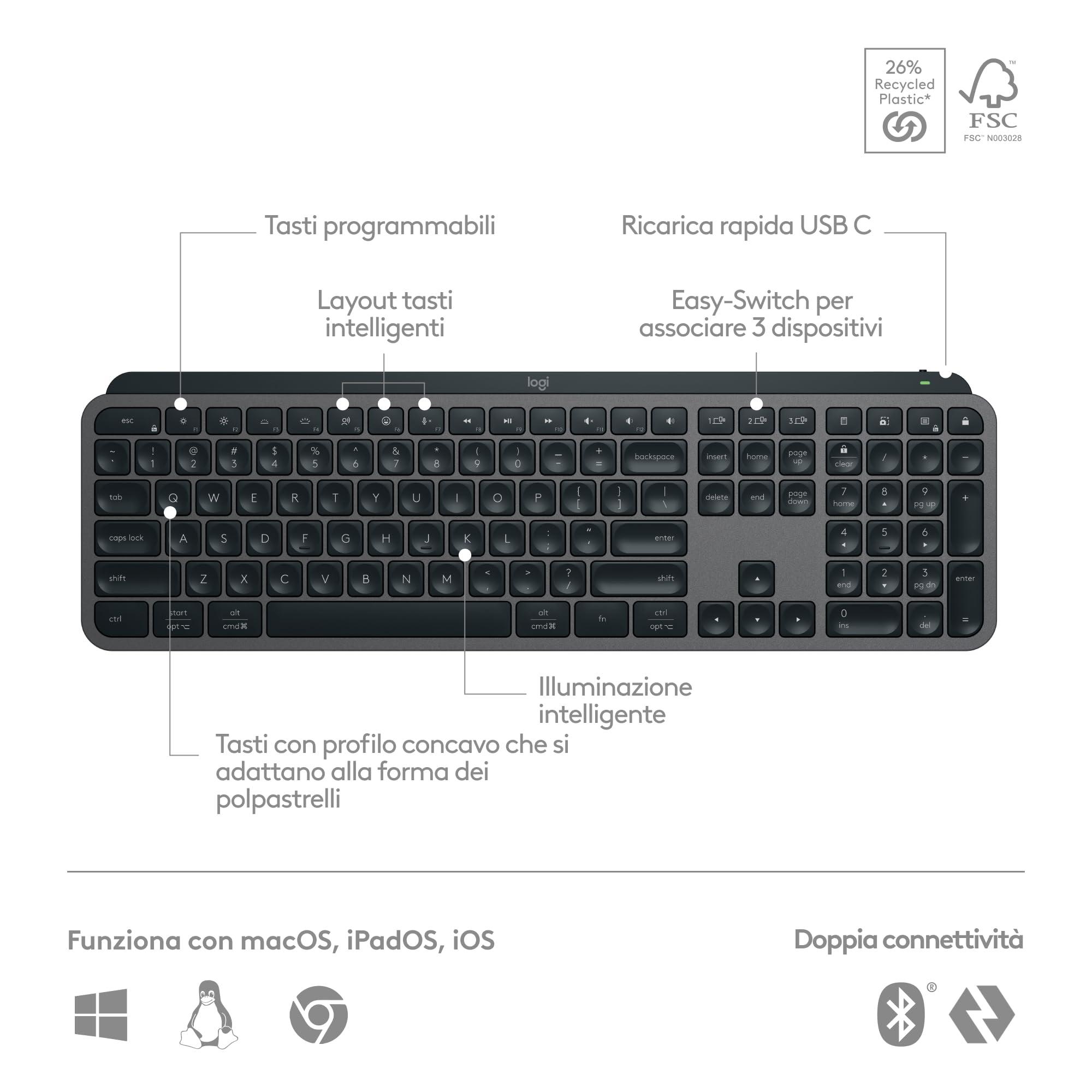 Logitech MX Keys S Plus Tastiera - Grafite, Layout Internazionale QWERTY