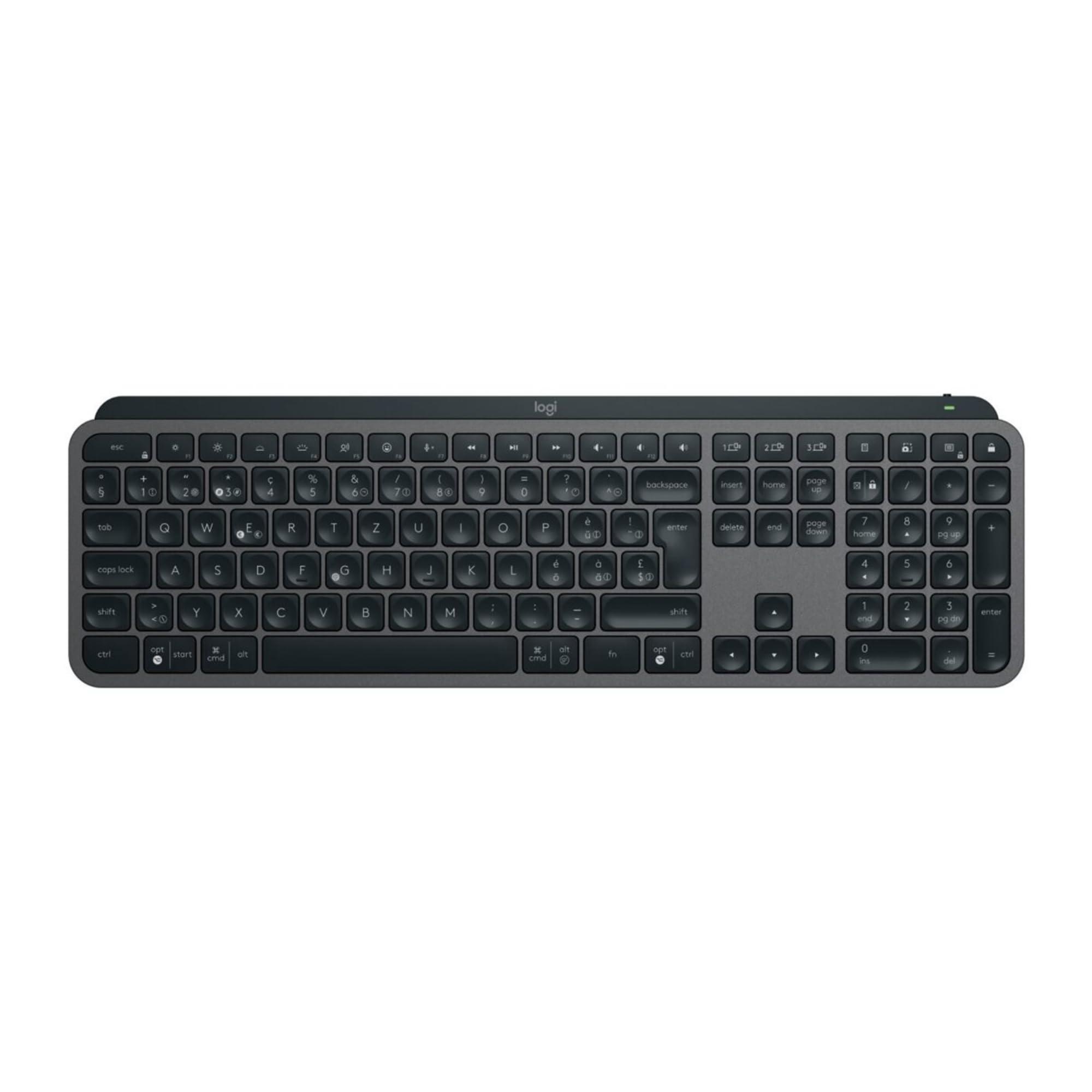 920-011590 - Logitech MX Keys S. Fattore di forma tastiera: Taglia piena (100%). Stile tastiera: Dritto. Interfaccia dispositivo: RF Wireless + Bluetooth Interruttore tastiera: Interruttore a forbice Struttura tastiera: QWERTZ. Tipo di retroilluminazione: LED. Utilizzo raccomandato: Universale. Colore del prodotto: Grafite