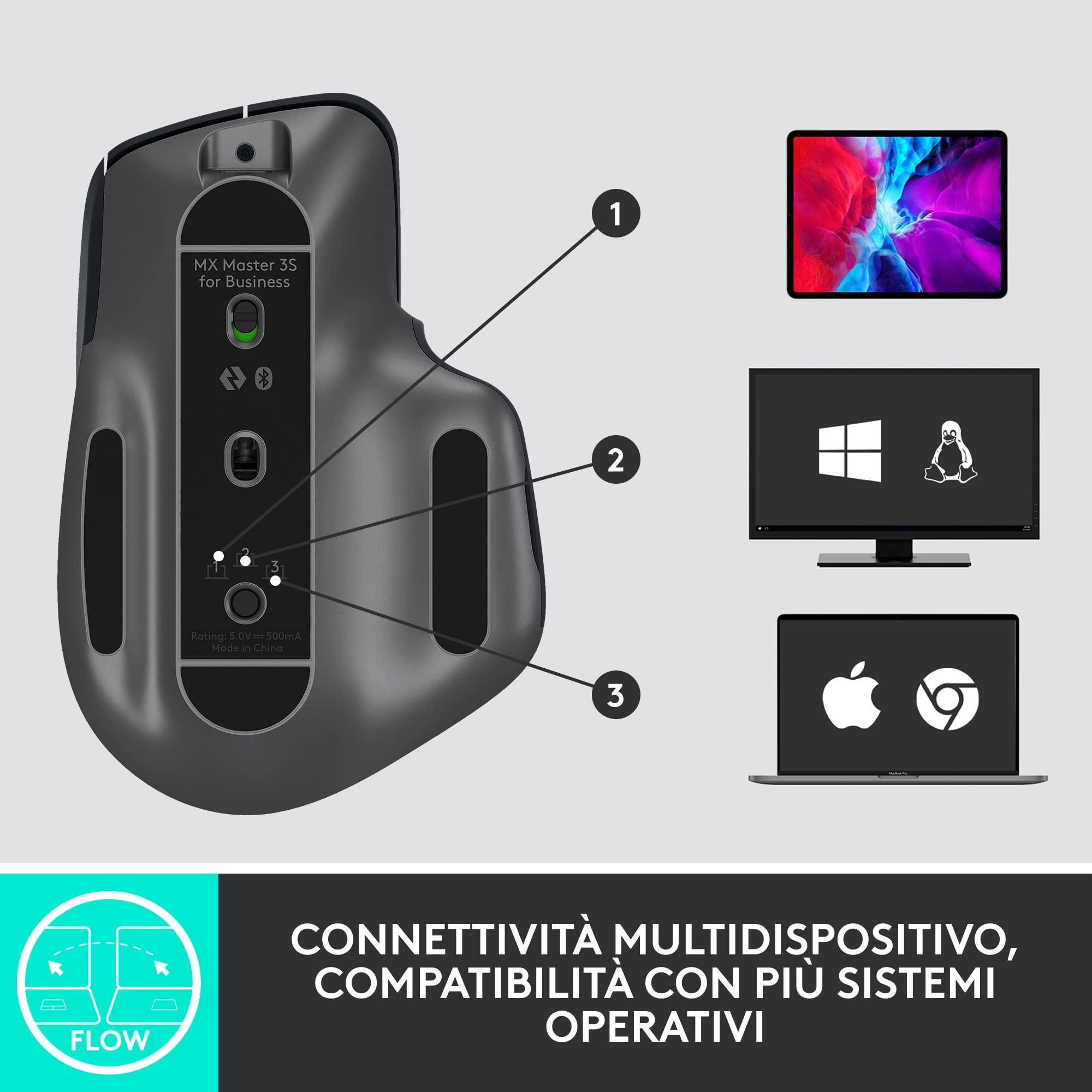 Logitech MX Master 3S for Business, Mouse Wireless con Clic Silenzioso, 8K DPI, Ricevitore USB Logi Bolt Protetto, Bluetooth, USB-C, MagSpeed, Windows/Mac/Chrome/Linux - Grigio