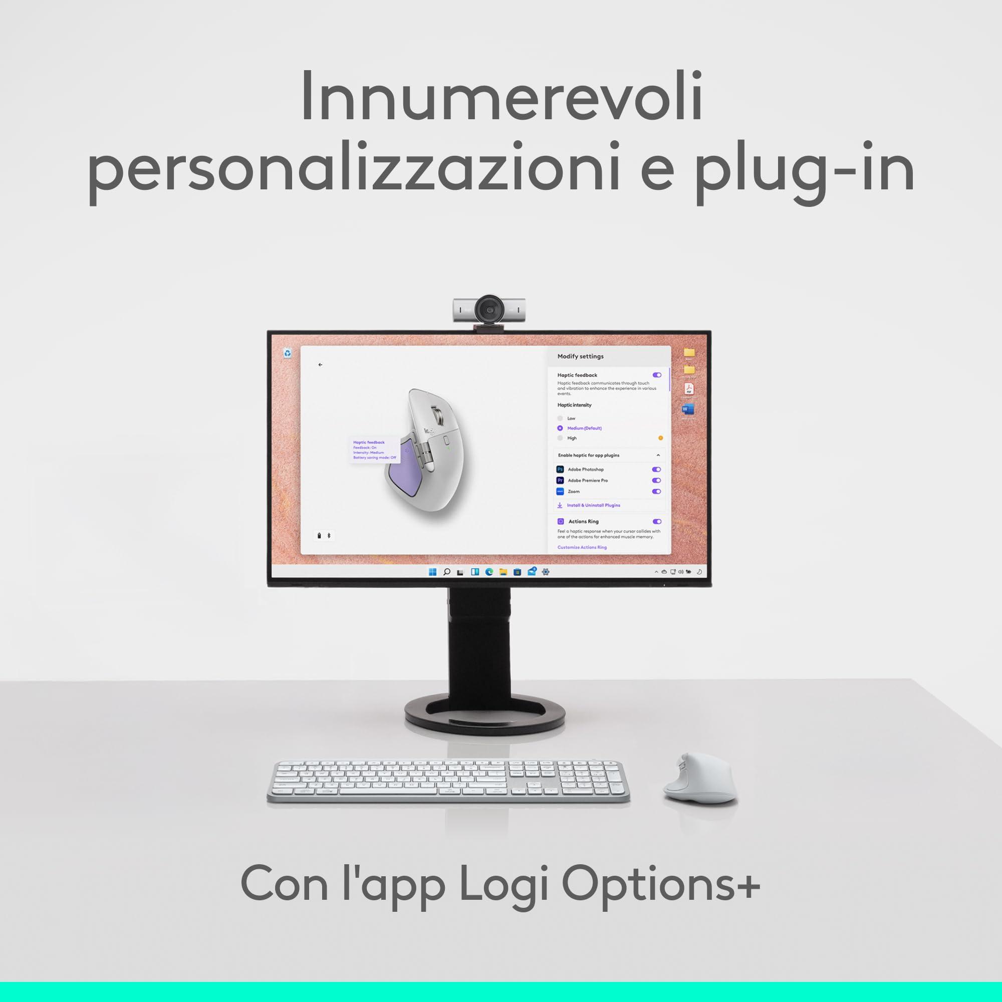 - Precisione percepibile con il pannello Haptic Sense; feedback aptico personalizzabile (1) su azioni specifiche, scelte rapide e notifiche per migliorare la produttività su questo mouse wireless Bluetooth