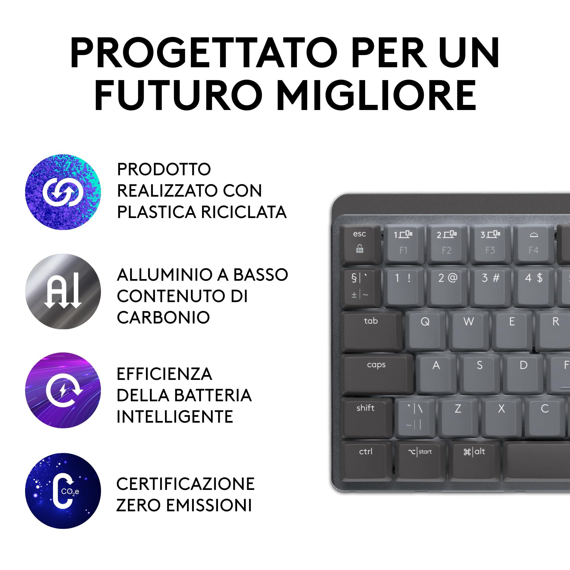 - Personalizzabile per un lavoro più efficiente: personalizza i tasti funzione, assegna effetti di retroilluminazione, abilita Flow per controllare più PC o dispositivi e altro con Logi Options+(1)