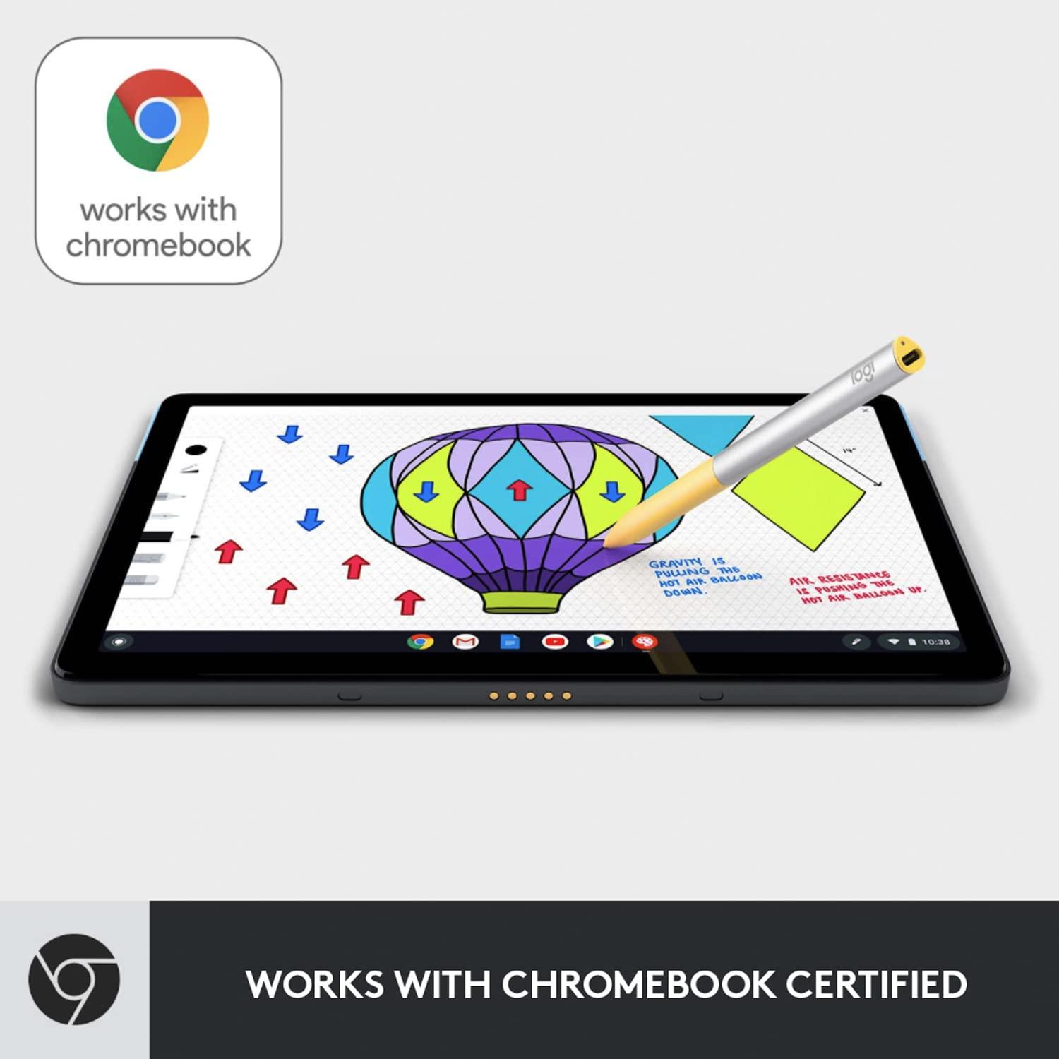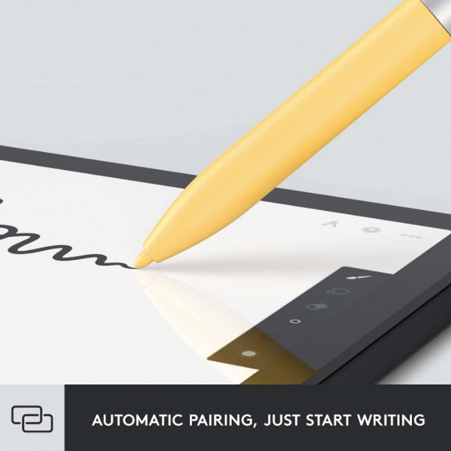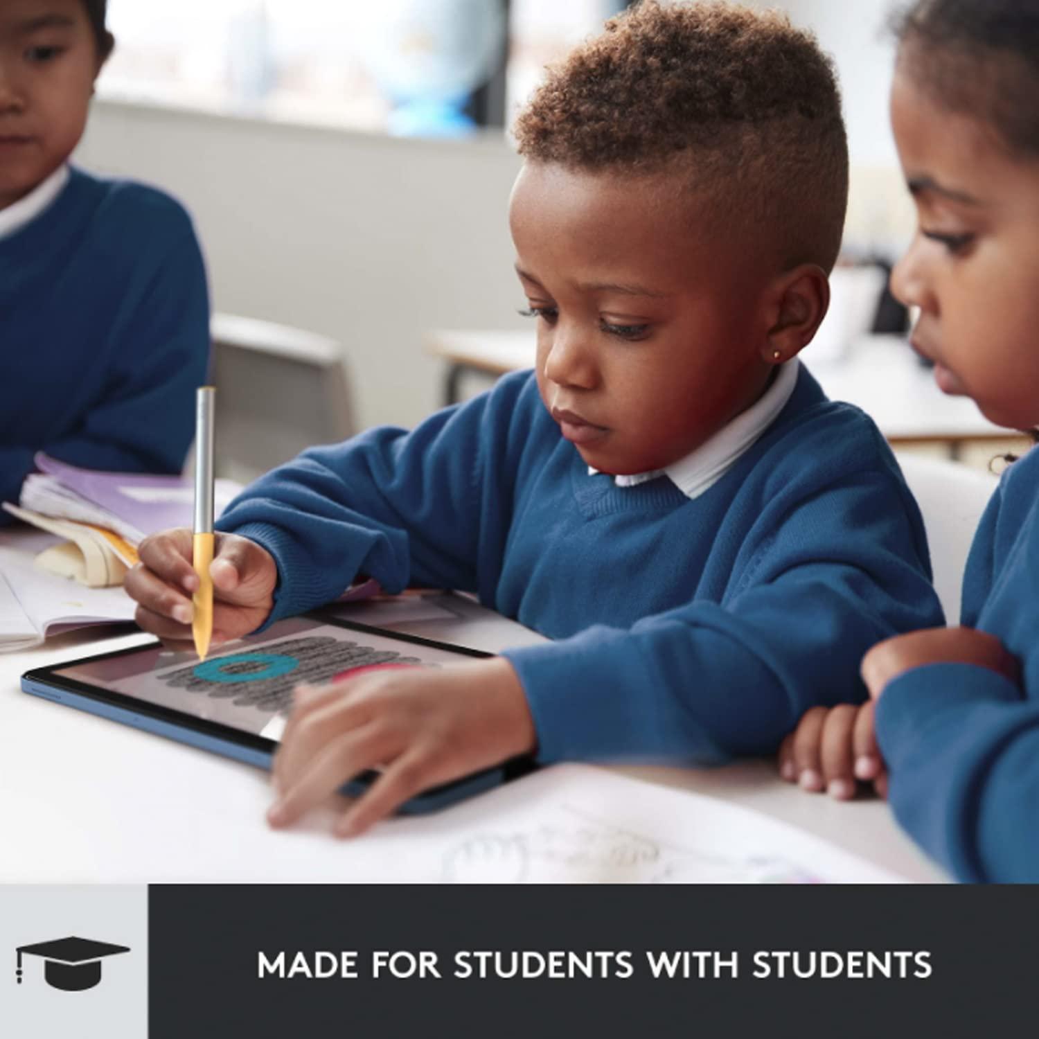 Logitech Pen per Chromebook Stilo USI ricaricabile progettato per l'apprendimento, Certificato per Chromebook, Nessuna associazione, Impugnatura morbida antiscivolo - Argento/Giallo