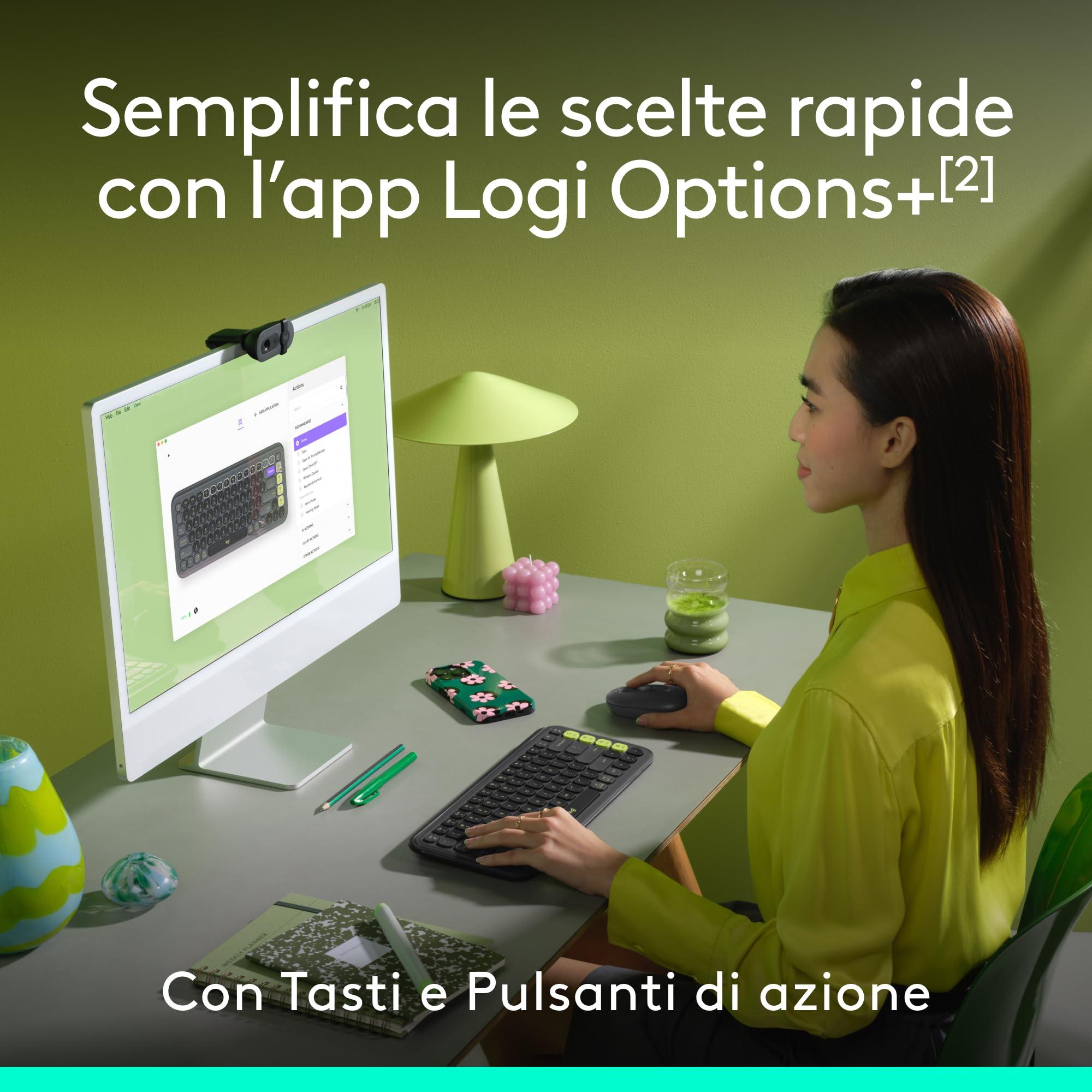 - POP come te: distinguiti con questo elegante kit composto da tastiera e mouse Bluetooth dal design audace e compatto, fornito con Tasti e Pulsanti di azione personalizzabili (1) per gestire al meglio il tuo spazio