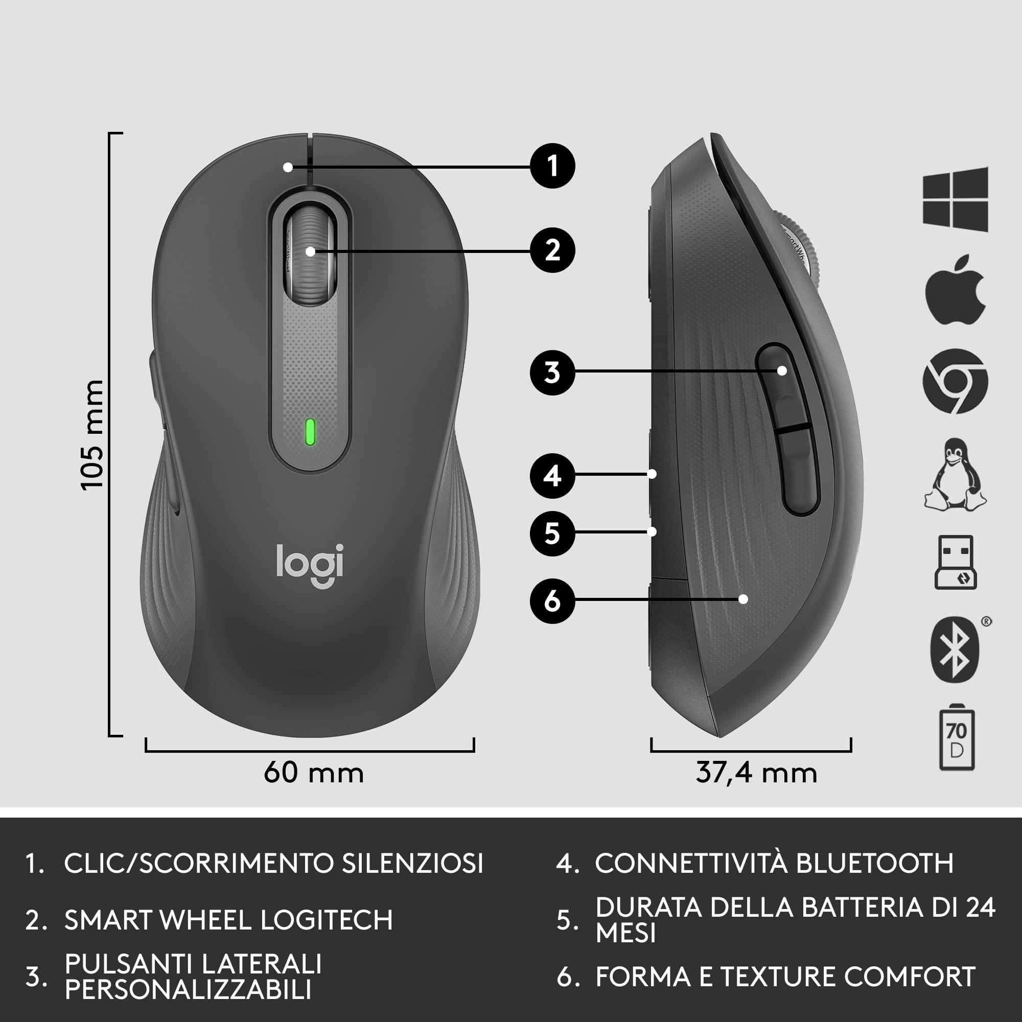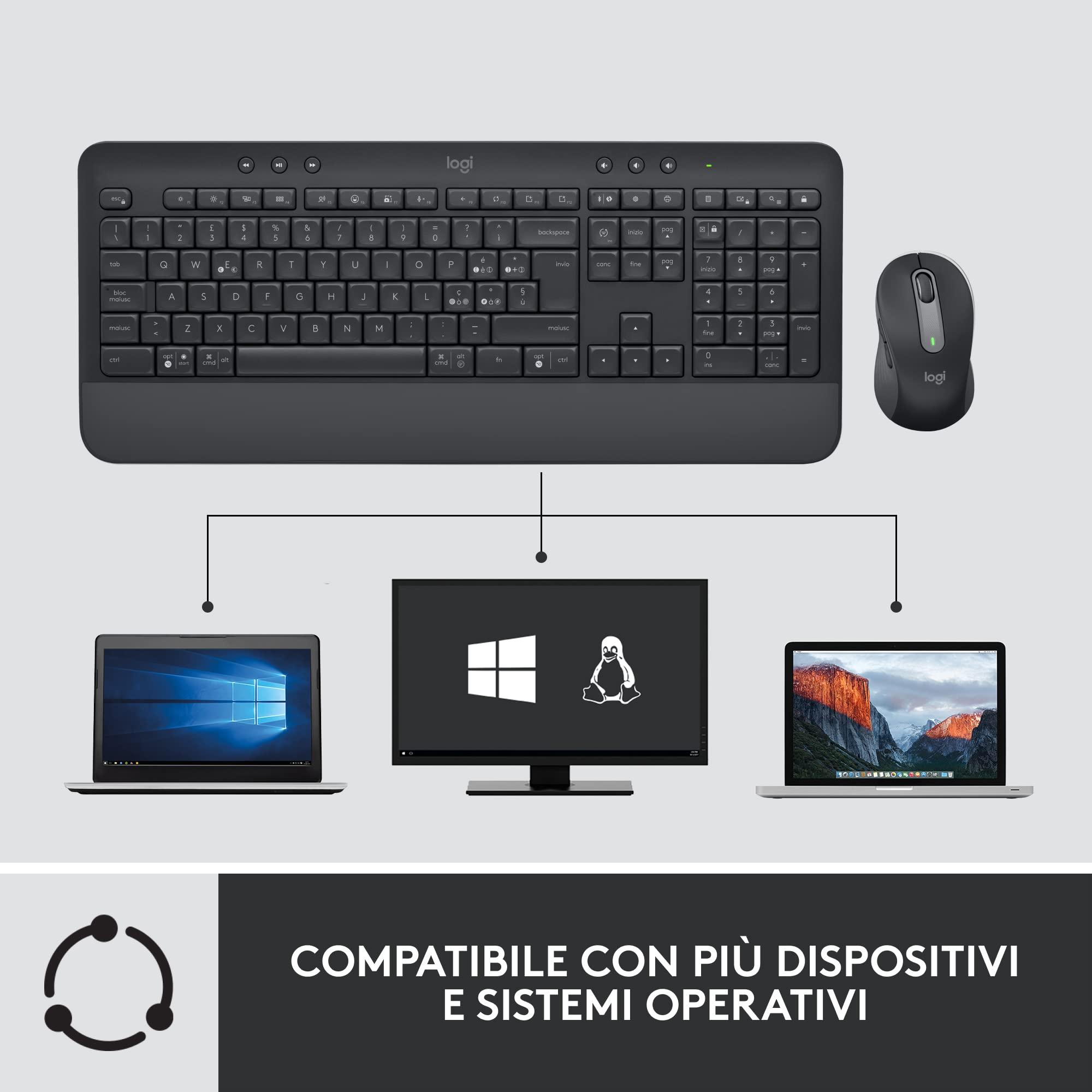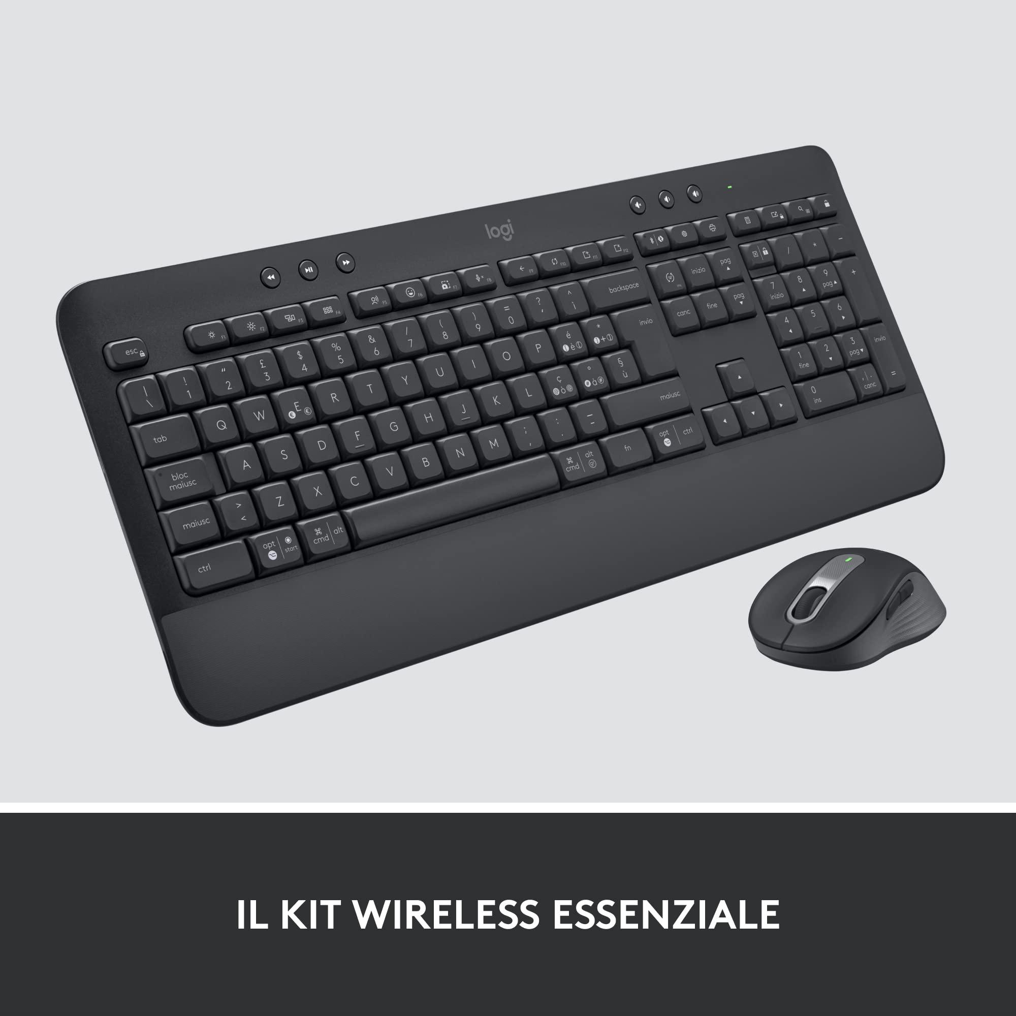 Logitech Signature MK650 Combo for Business, mouse e tastiera senza fili, Logi Bolt, Bluetooth, SmartWheel, certificato a livello globale, Windows/Mac/Chrome/Linux, ITA QWERTY - Nero