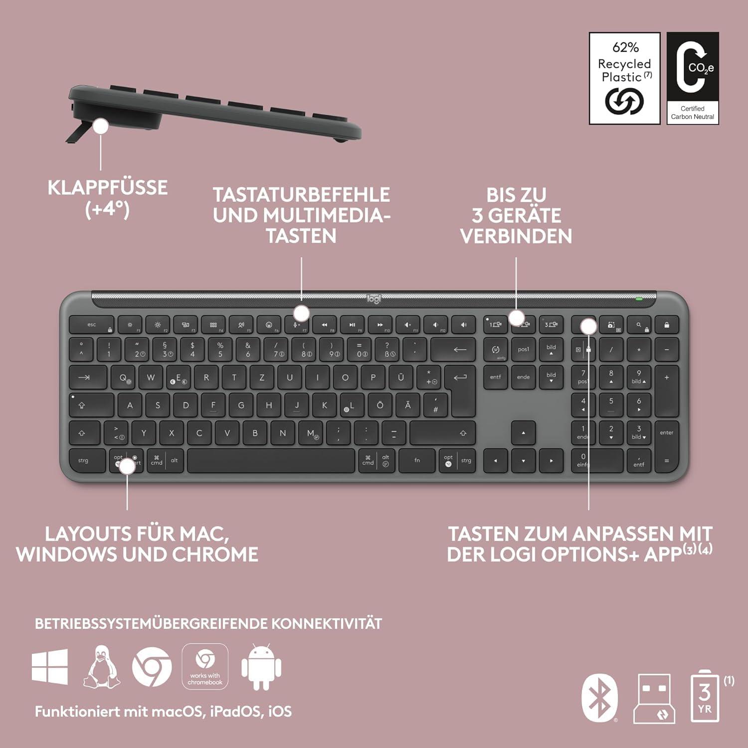 Logitech Signature Slim K950, tastiera wireles - Grafite, Layout Tedesco QWERTZ