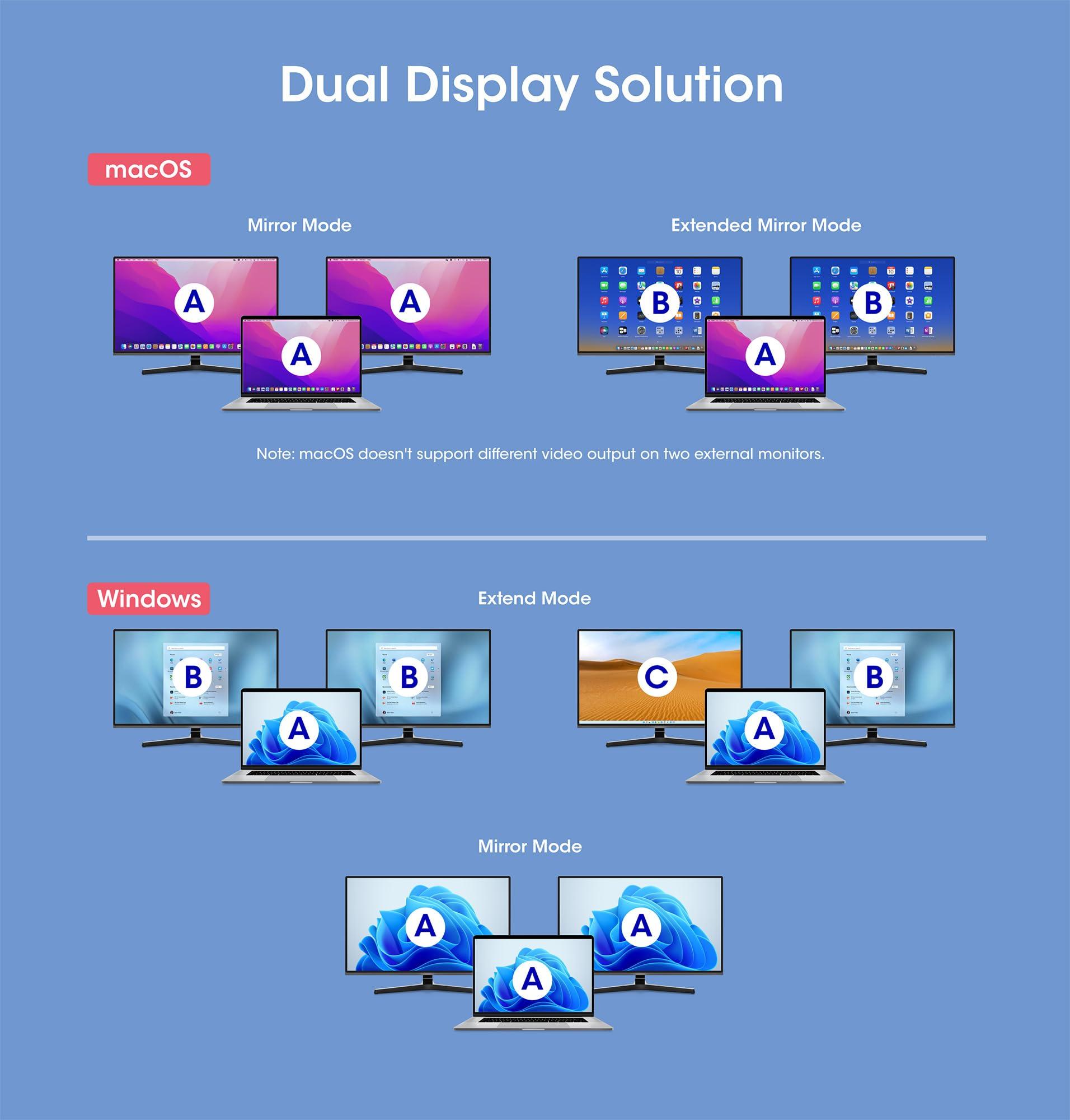 - Utilizza MultiSteam Transport (MST) per le modalità di visualizzazione su Windows (Duplicato o Completamente Avanzato) e Mac (solo Duplicato o Avanzato Duplicato)