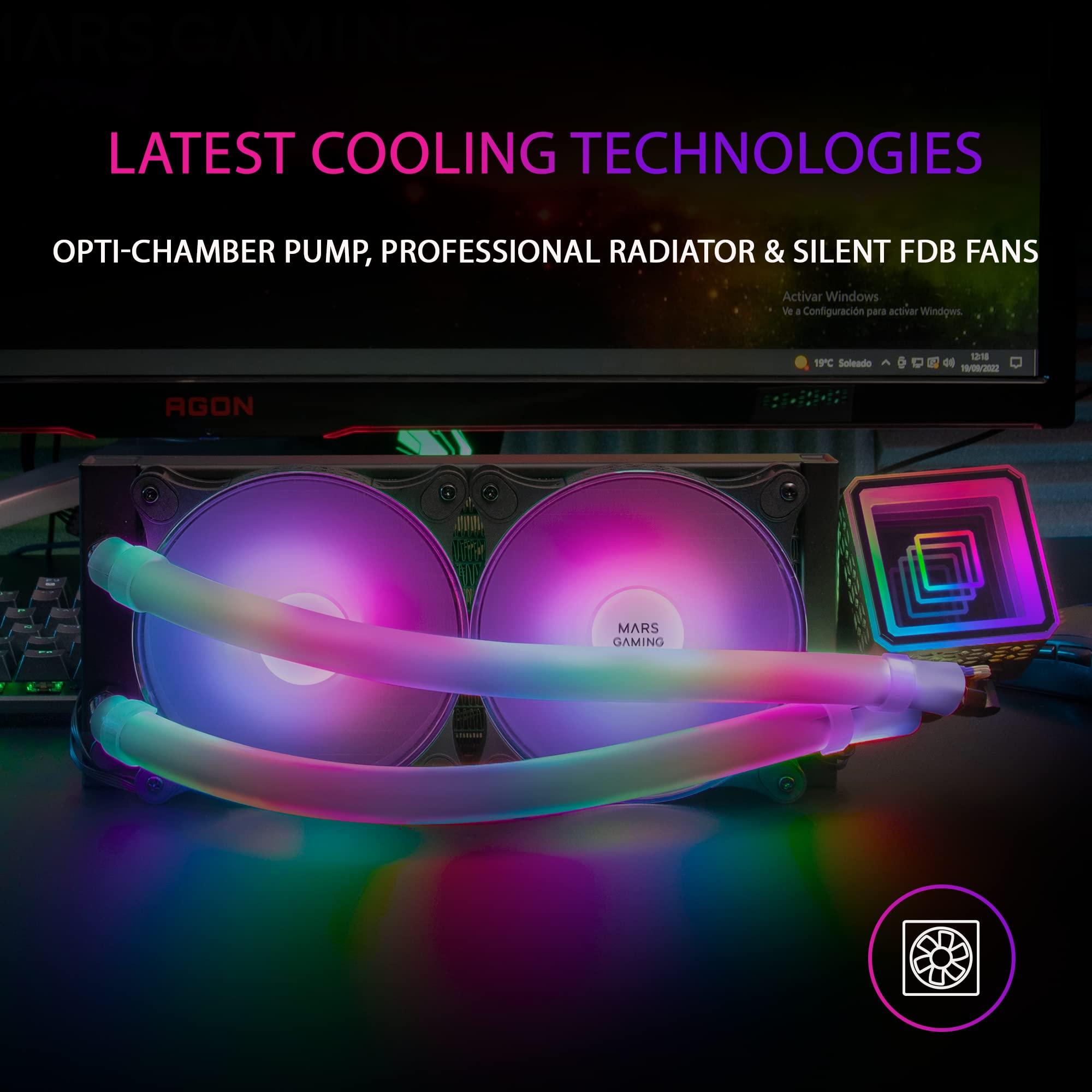 Mars Gaming ML-PRO120, Raffreddatore a Liquido Professionale CPU, TDP 220W, Ventola FDB ultra-silenziosa, Pompa Opti-Chamber con Anello di Illuminazione Bianco, Multisocket Universale, Nero