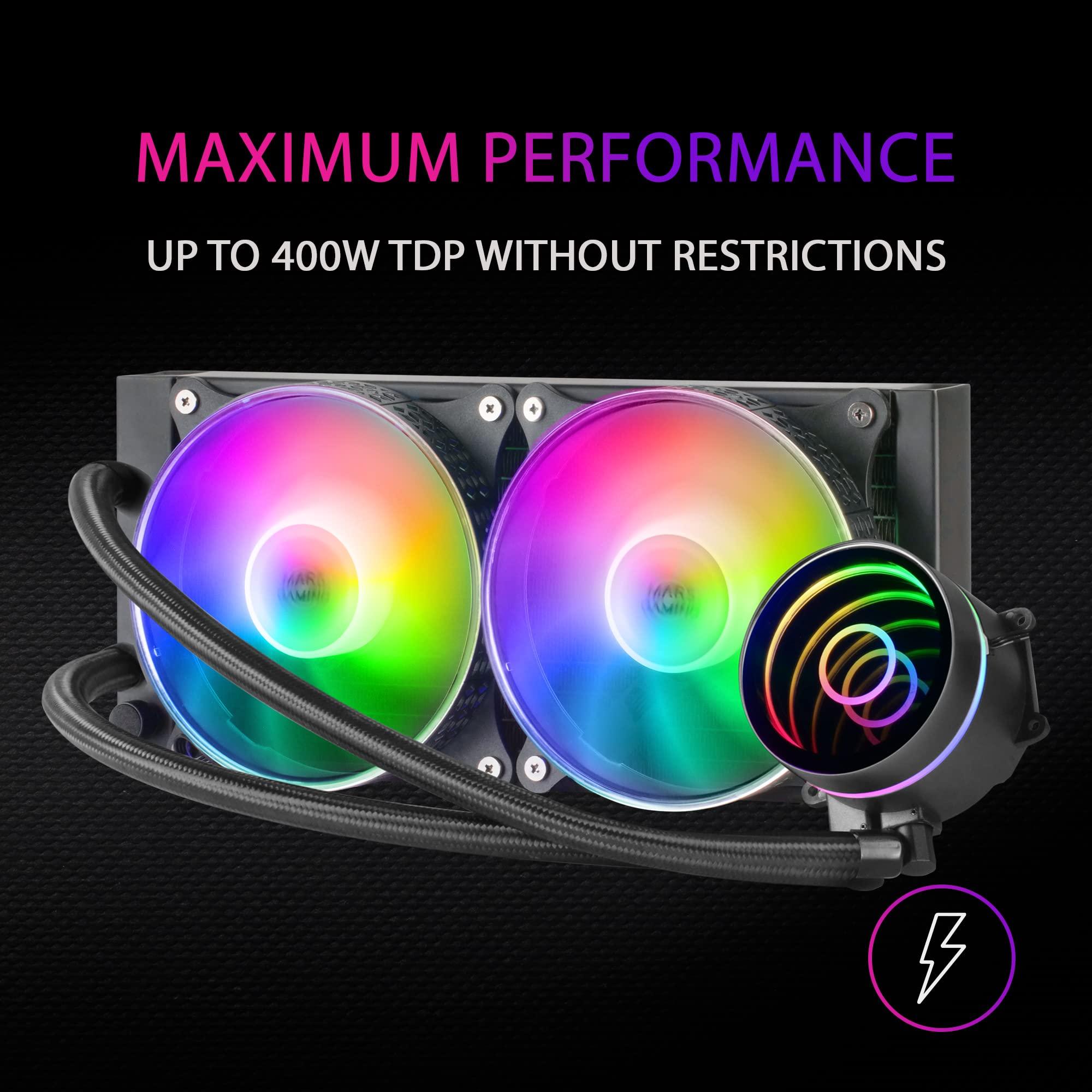 MARSGAMING ML-ONE360 Nero, Raffreddamento a Liquido CPU, TDP 550W, Infinity Mirror, 3 Ventole FRGB Silenziose, Universale Multisocket