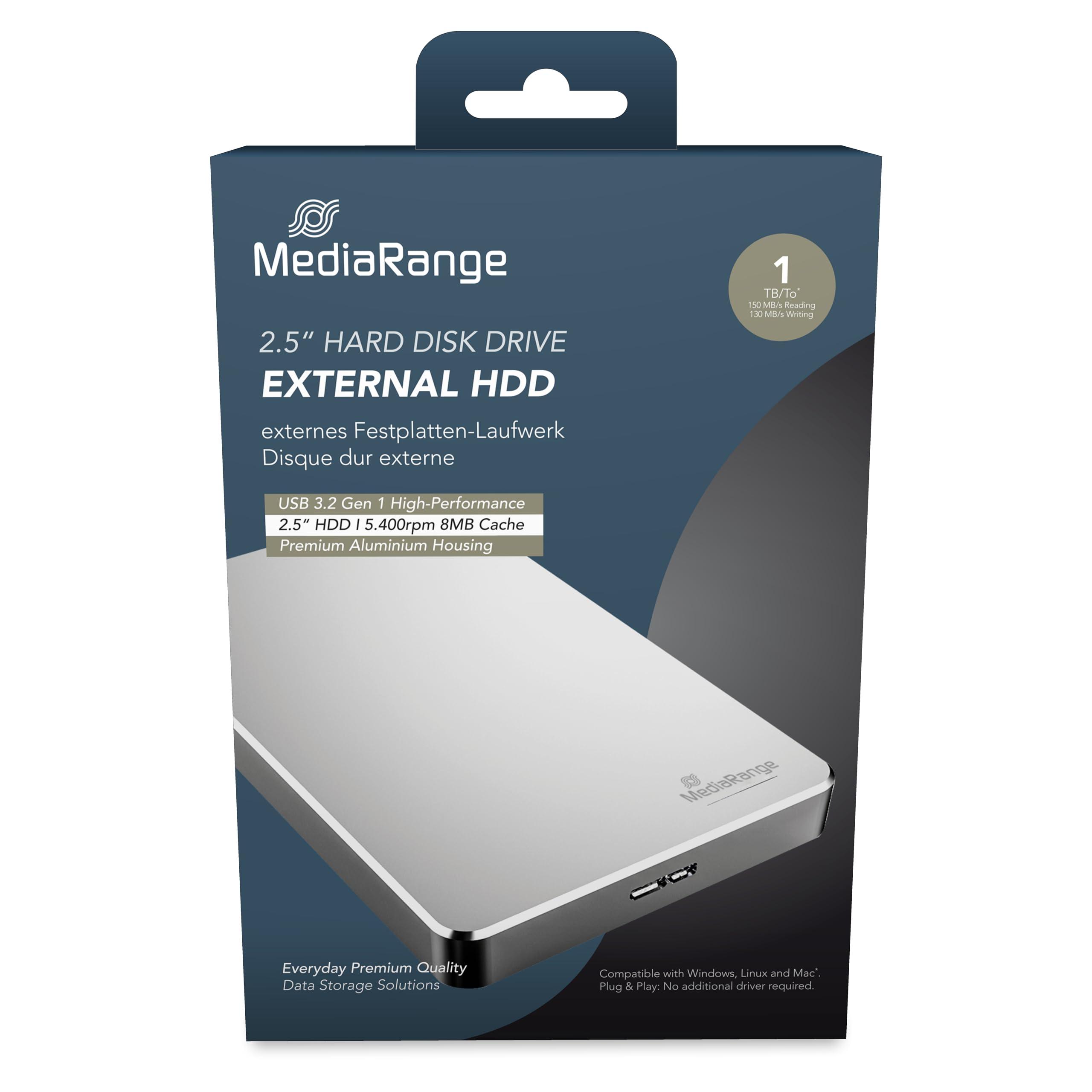 MediaRange 813054 mr996 disco rigido esterno hdd 1 tb rosso